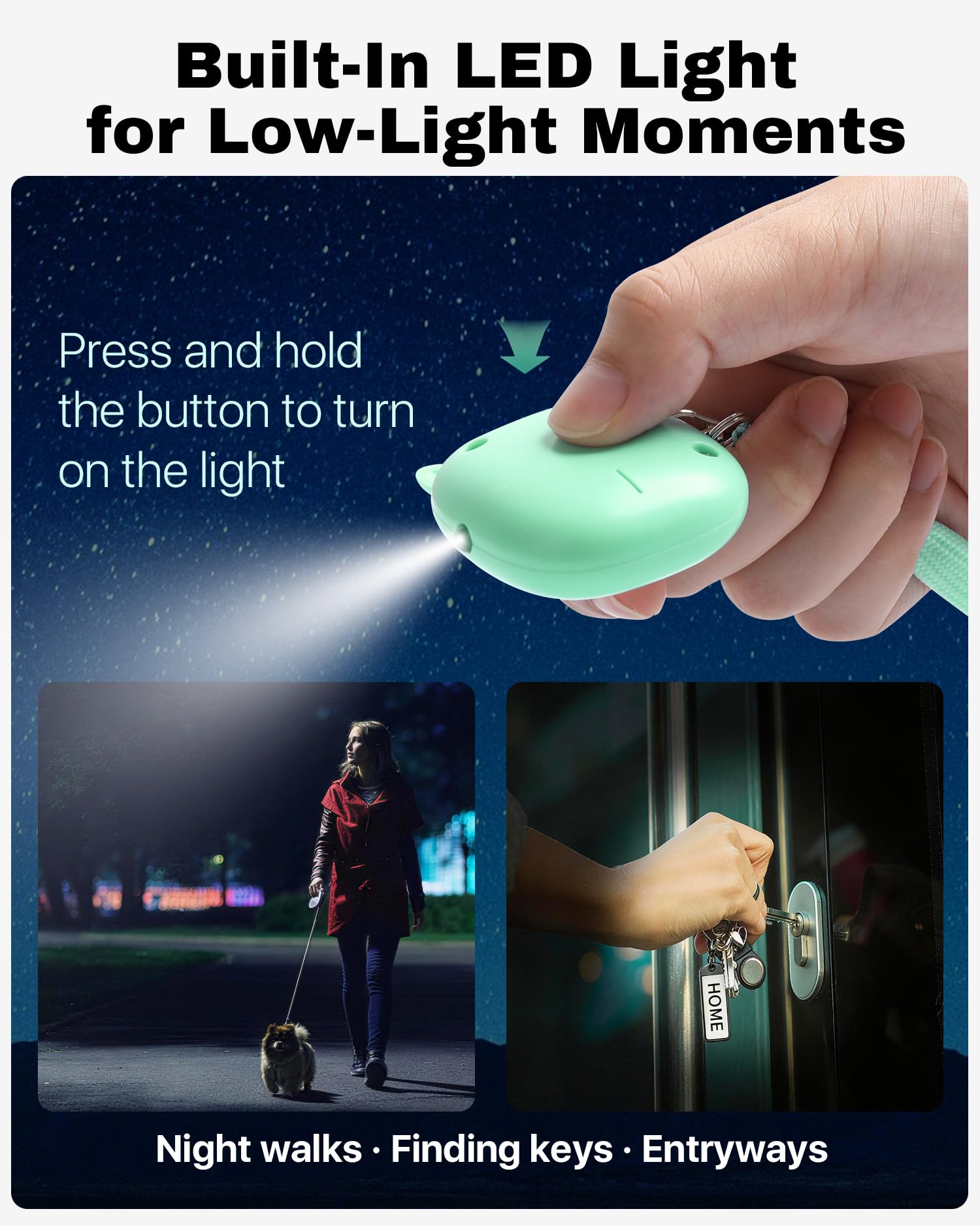 COMPACT & EASY TO CARRY: Small and lightweight design clips easily to keys, bags, backpacks, or purses. Suitable for women, seniors, students, commuters, travelers, and anyone who wants extra reassurance on the go
