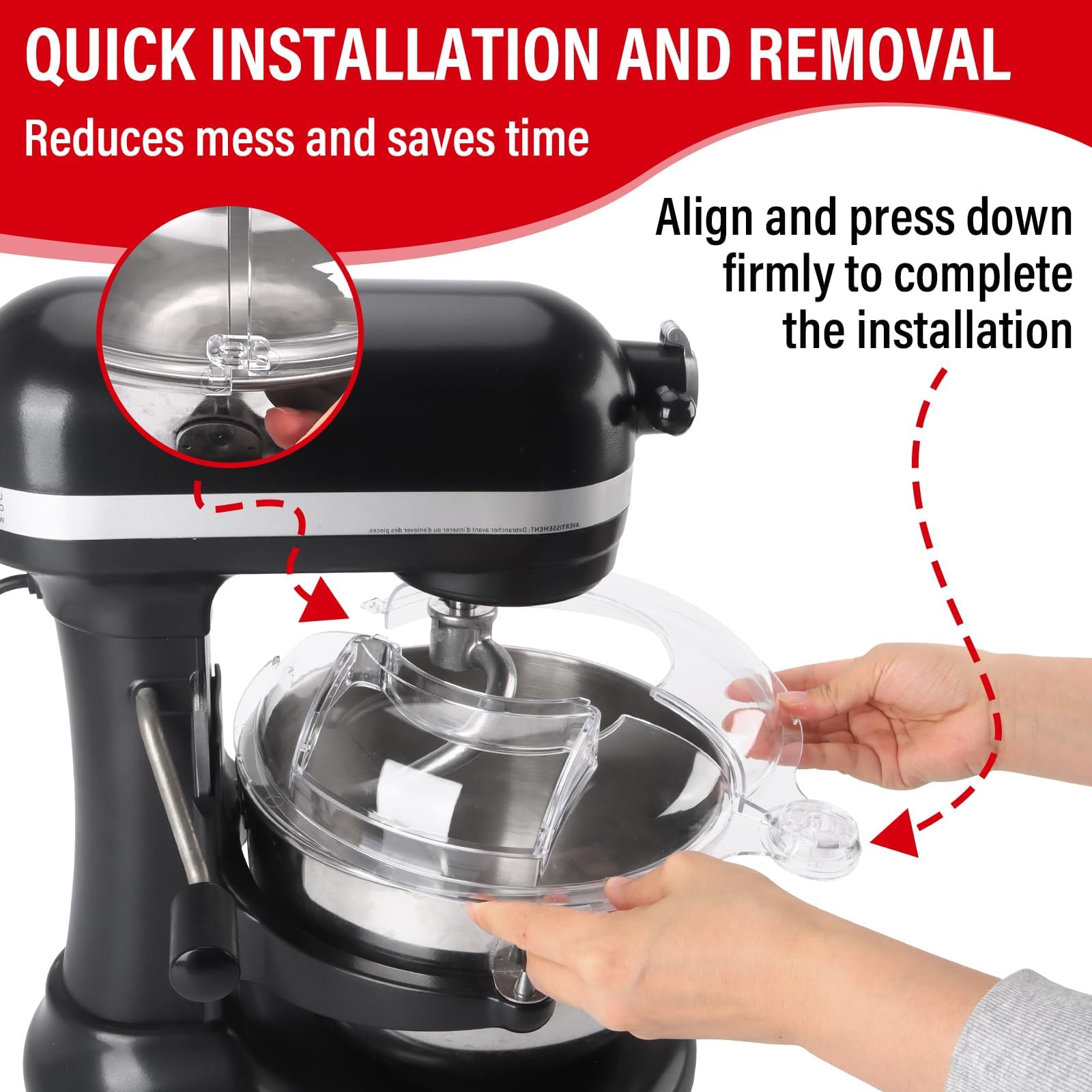 Easy to install: simple to install and easy to clean, dishwasher safe. Hanging hole design is convenient for you to organize and store when not in use. Tip: Please check the model of your mixer and the size of the bowl before purchasing.