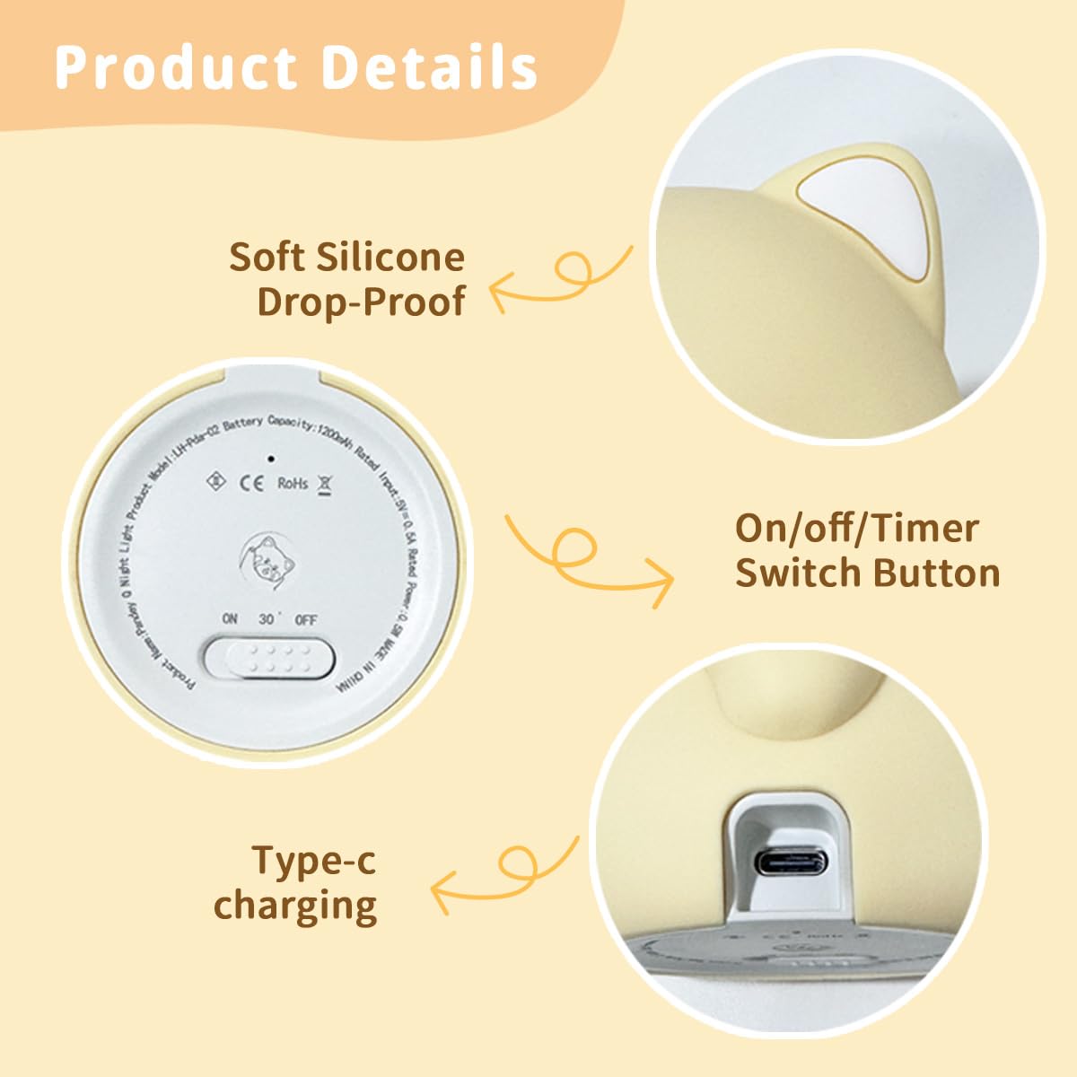 Pat Control with 2 Brightness & 30-Min Timer: Features intuitive pat-to-change control to switch between two brightness levels—low for sleep and night feeds, high for diaper changes. The built-in 30-minute auto-off timer saves battery and provides worry-free operation for uninterrupted sleep.