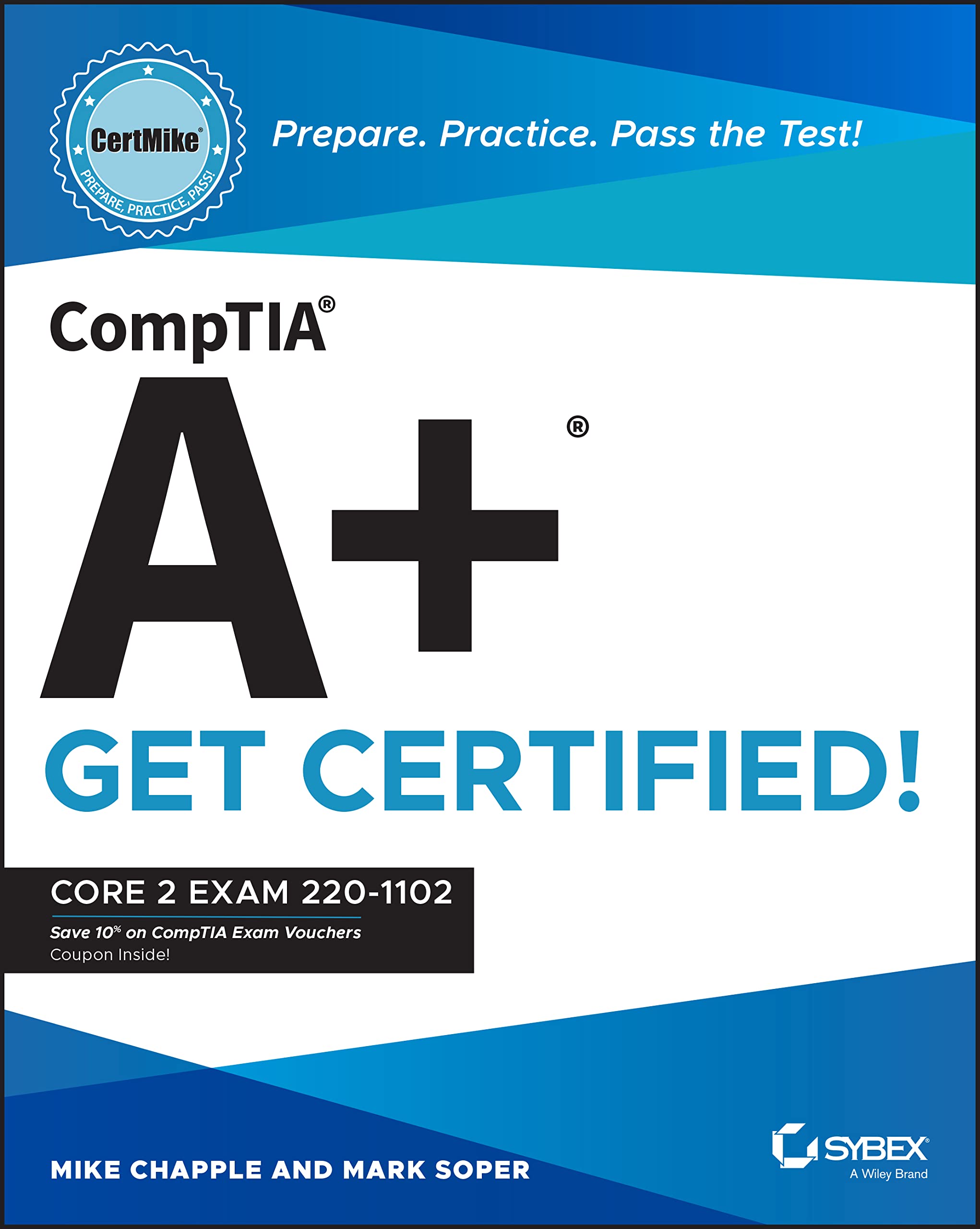 Skip the fluff and get straight to the essentials with an indispensable prep handbook for the CompTIA A+ Core 1 exam In CompTIA A+ CertMike: Prepare. Practice. Pass the Test! Get Certified! Core 1 Exam 220-1101, veteran tech experts and educators Mike Chapple and Mark Soper deliver a hands-on and practical roadmap to takingβand succeeding onβthe CompTIA A+ Core 1 exam. Youβll learn how to install, configure, and maintain computer equipment, mobile devices, and software for end users, service components based on customer requirements, understand networking basics, and apply essential cybersecurity methods. Ace the test using the proven CertMike approach: Prepare -- CertMike is your personal study coach, guiding you through all the exam objectives and helping you gain an understanding of how they apply to on-the-job tasks! Practice -- Each chapter includes two multiple choice practice questions. Work through the detailed explanations to evaluate each answer option and understand the reason for the best answer! Pass -- On exam day, use the critical knowledge you've learned when youβre ready to take the test. You'll feel ready and confident to pass the exam and earn your certification! With a laser-focus on getting you job- and exam-ready, the book skips the fluff and gets right to the point of getting you familiar with IT basics and on the road to an in-demand IT certification and a new career in tech. Youβll also get complimentary access to additional online study tools, complete with a bonus practice exam and audio recordings of the CertMike Exam Essentials. Banish test anxiety and feel ready to pass the testβthe first time around! An indispensable resource for anyone preparing for their A+ certification, CompTIA A+ CertMike: Prepare. Practice. Pass the Test! Get Certified! Core 1 Exam 220-1101 is also a must-read for hardware and PC technicians seeking to upgrade their skillset.