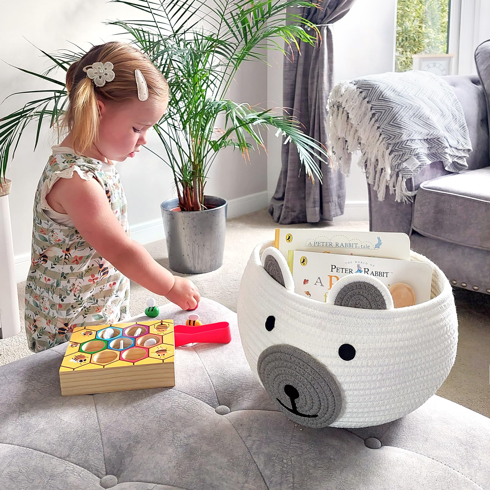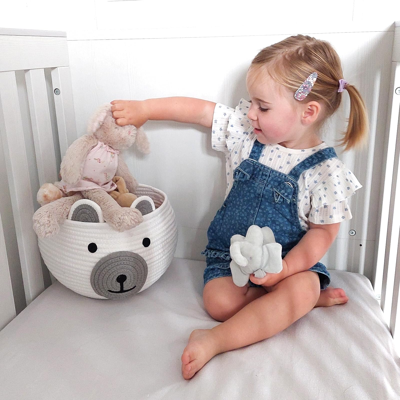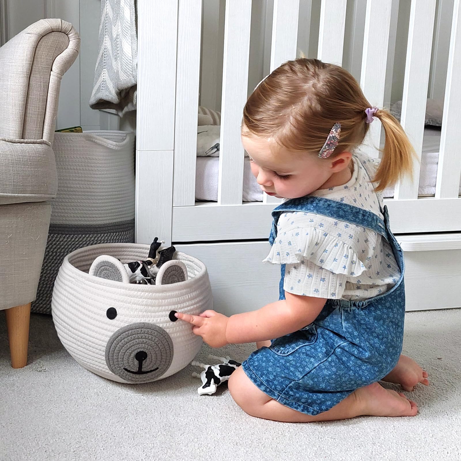 Unique Amimal Design: Made from soft coiled rope, this animal storage bin with a playful bear face adds sweet flair to their space while keeping the room neat and tidy