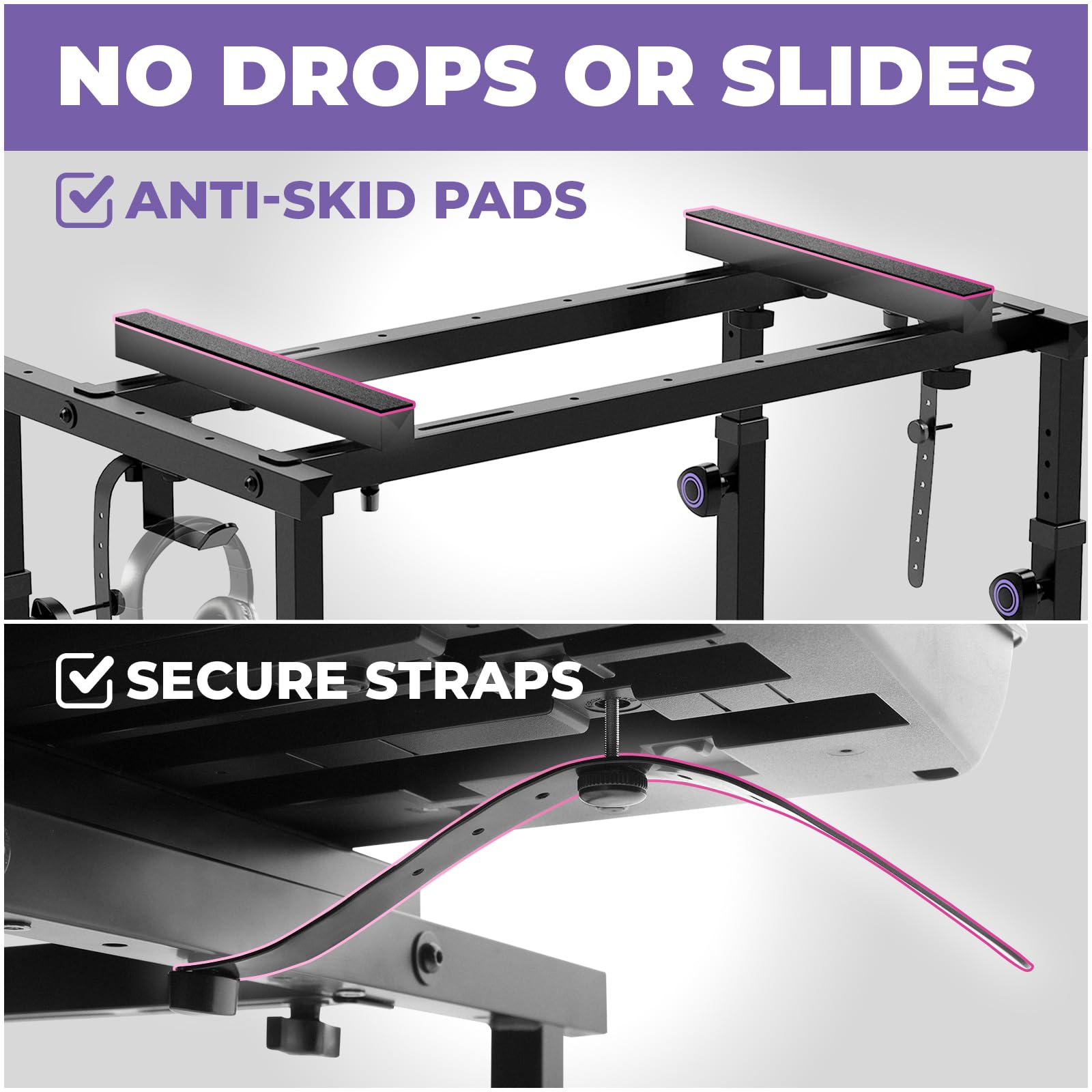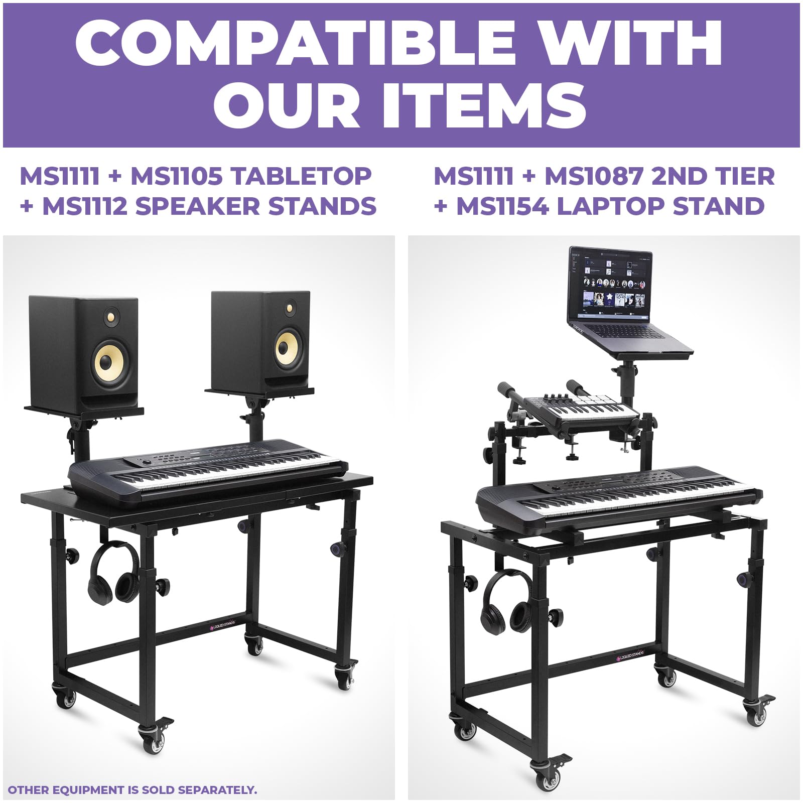 VERSATILITY: Use for Keyboard, Synths, MIDI controllers, Turntables, Audio Mixers, and more. Use the included hardware to mount a tabletop and create even more space for music production, gaming, and more.