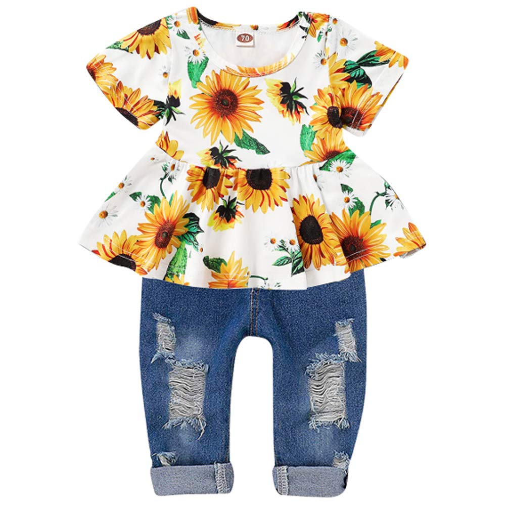 Package Includes: 1 x short sleeve shirt,1 x blue jeans. This baby girls jeans outfit is a must-have for your baby girl's wardrobe.