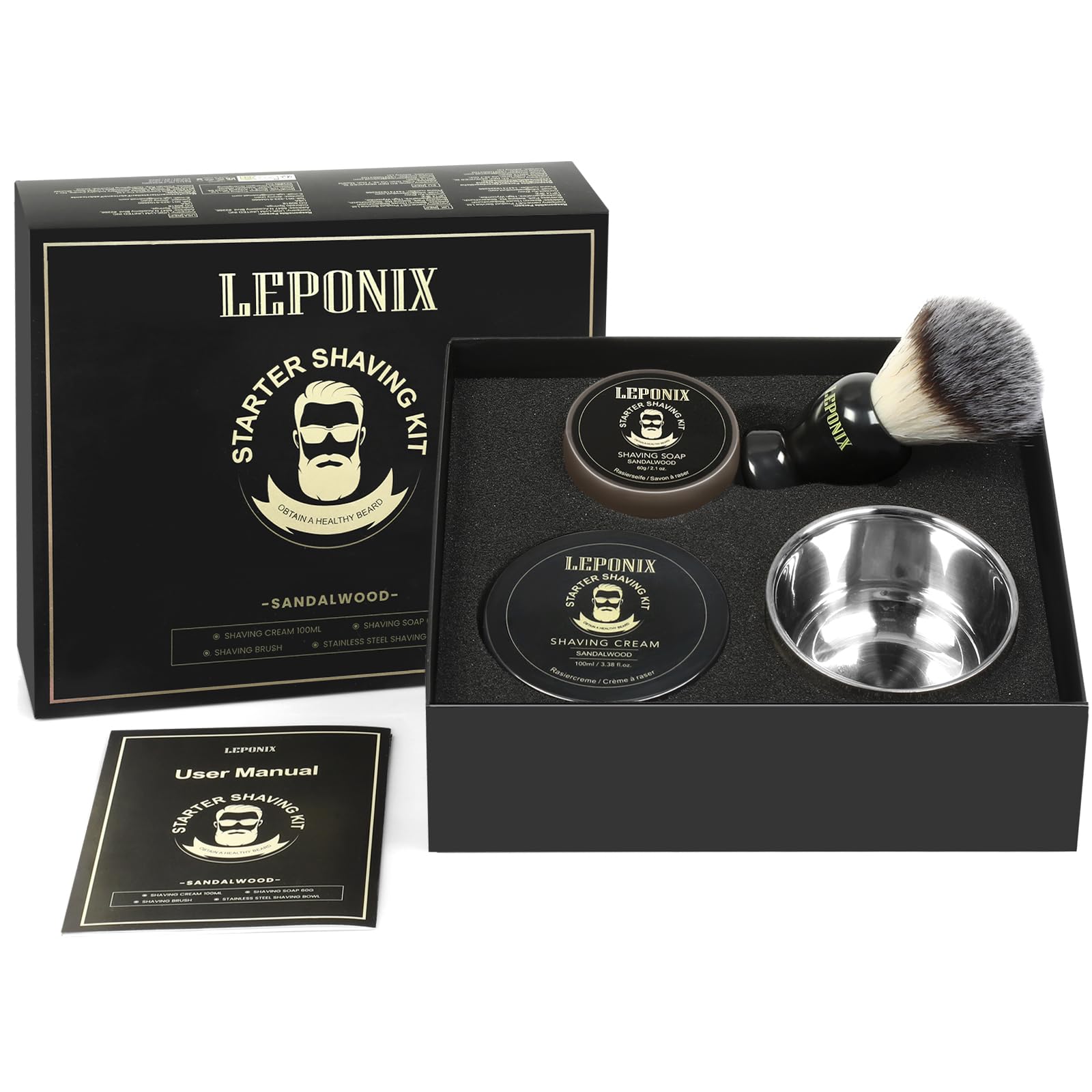 All-in-One Starter Kit for the Perfect Wet Shave: Begin your traditional shaving journey with LEPONIX's shaving kit for men. This shaving kit groups the shaving brush, bowl, cream, and soap—everything needed to create a protective, luxurious lather for a close, comfortable shave. It's your essential starter kit to transform daily routine into a barbershop-quality experience at home.