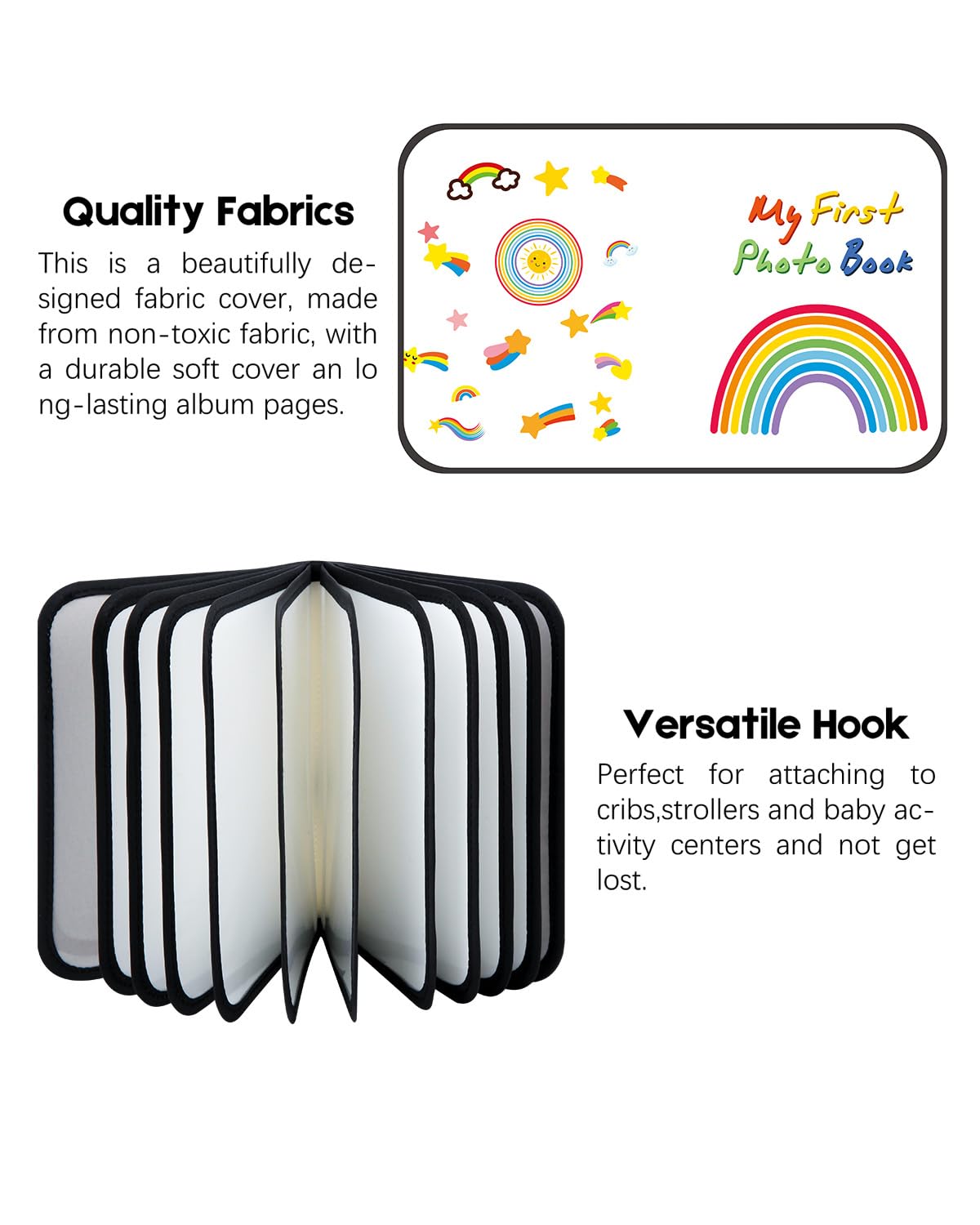 XFveivoo Baby's My First Family Photo Album for Baby Holds 21 4x6 Photos, Baby Photo Album Soft Cloth Book My First Album for 4x6 Baby Shower Kids Toddlers Pictures Toddler Photo Album (Black)