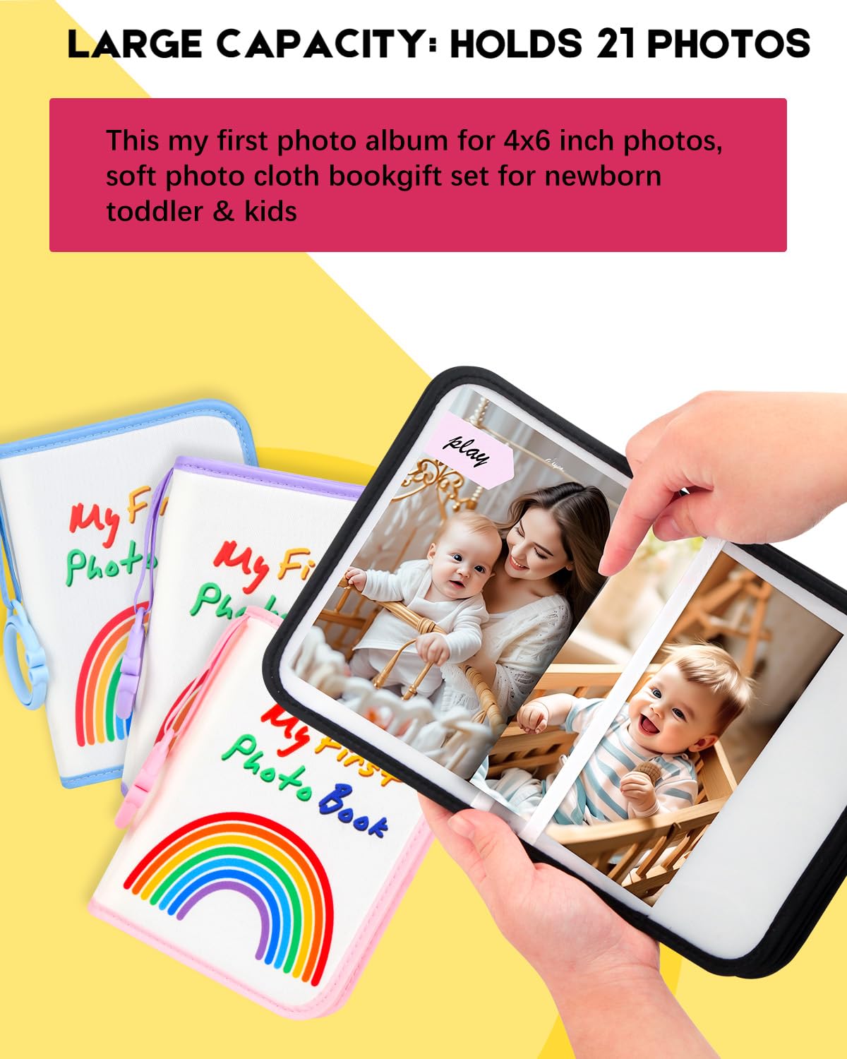 HIGH QUALITY FABRIC MATERIAL: This soft photo book is made from child safe and environmentally friendly fabric that is non-toxic and odourless. The cute cover pattern will not fade. The inside photo slots are smooth and odourless. The surface and edges of the family album are covered with a soft cloth, as are the inside pages of the album, very safe for babies.