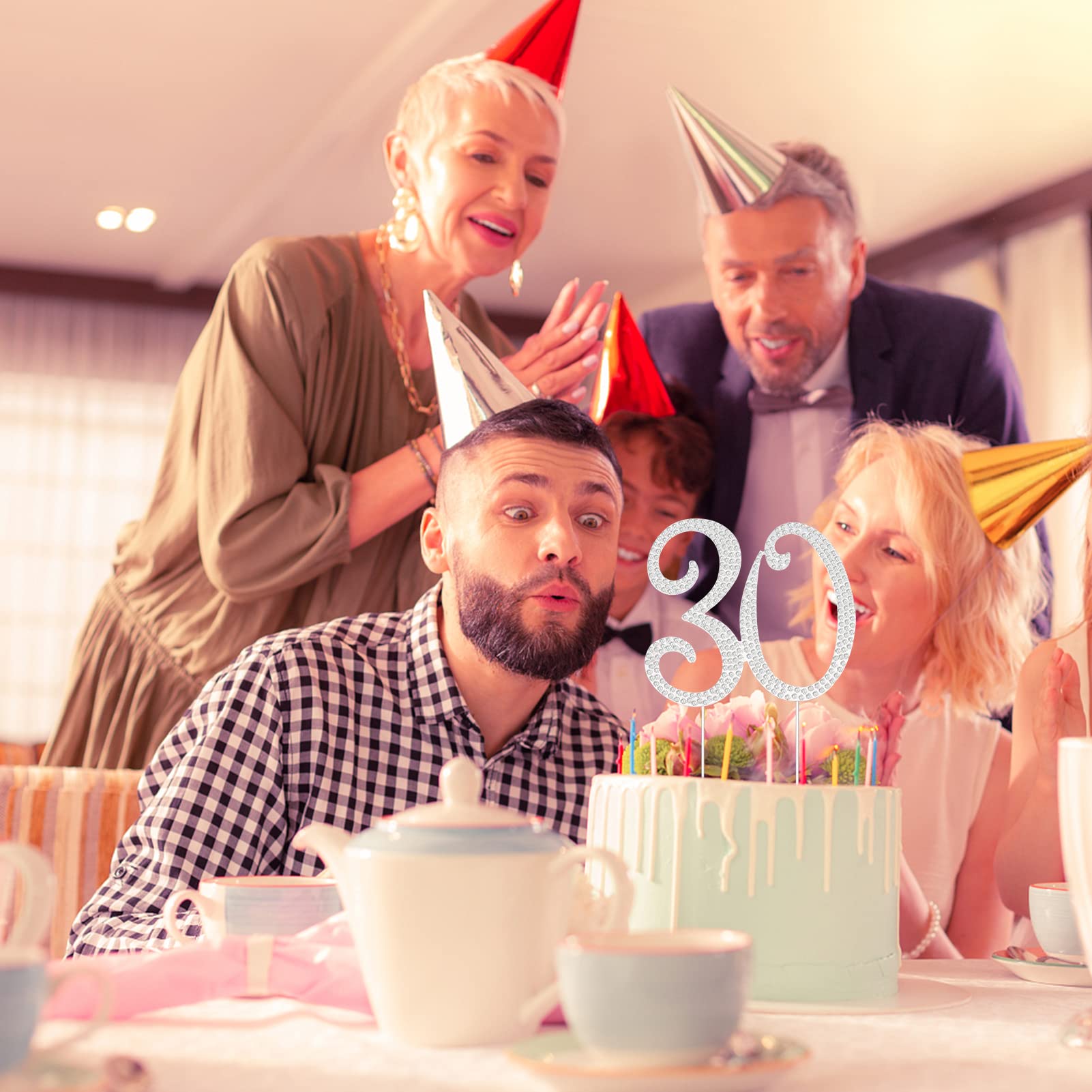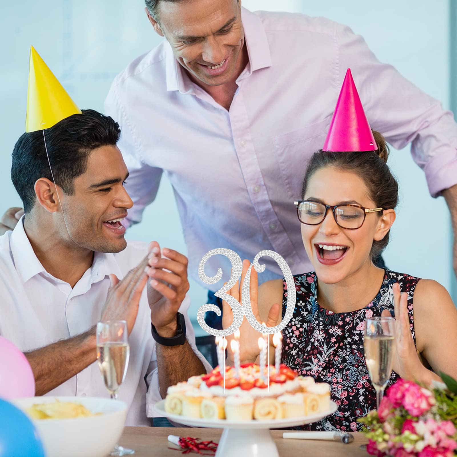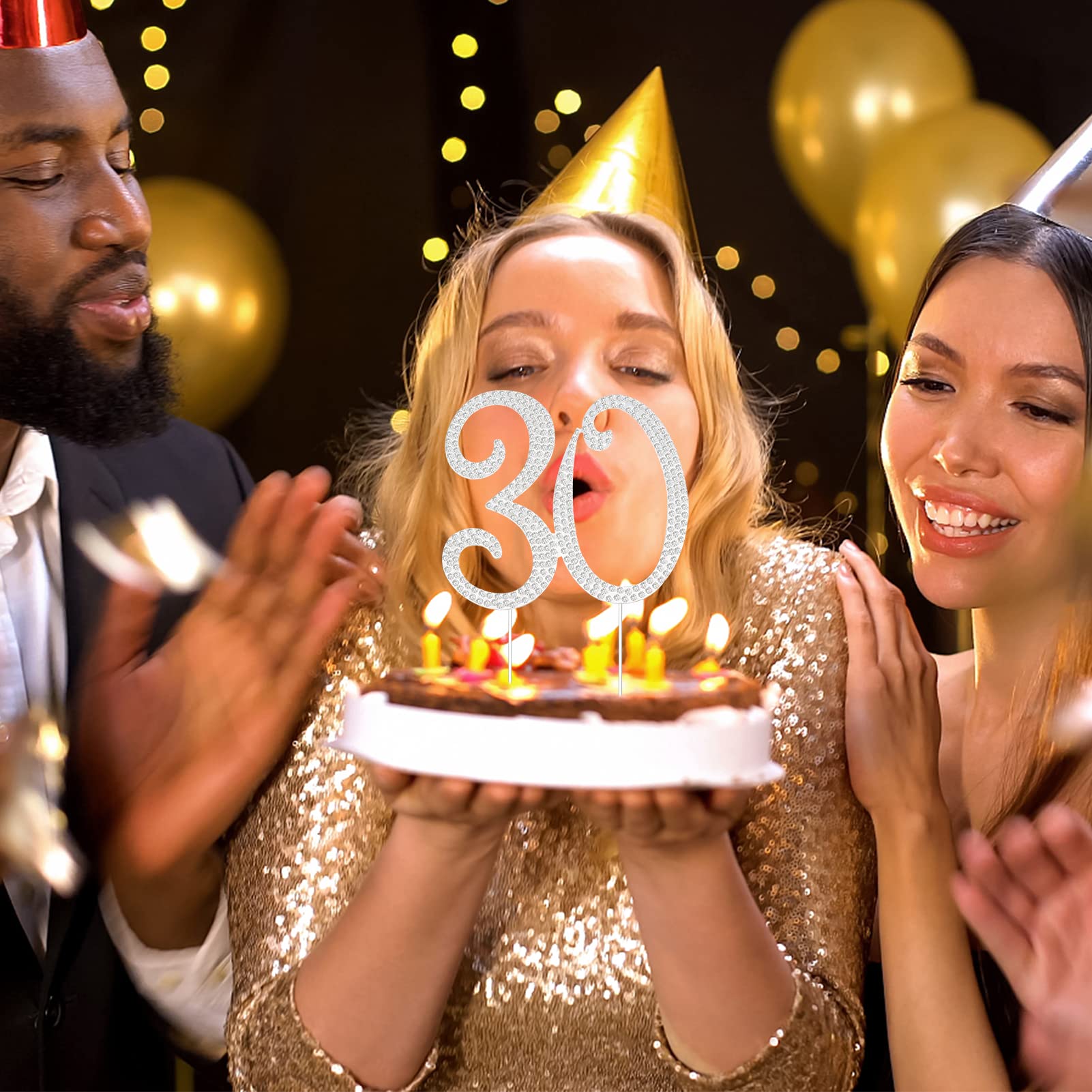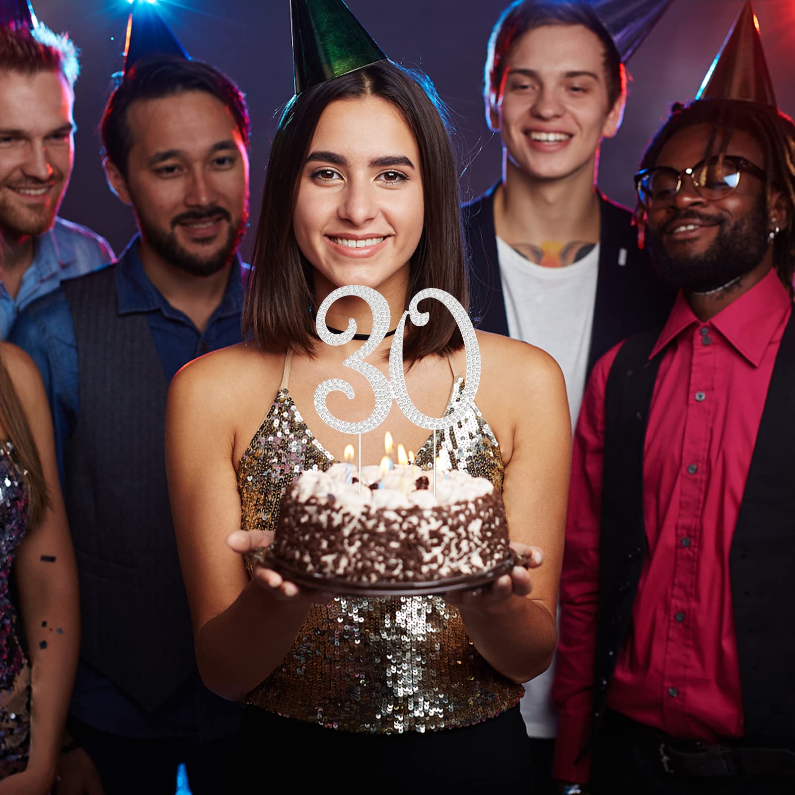 PREMIUM QUALITY: Sturdy metal alloy of 30 diamond cake topper, bling rhinestone birthday number also attached for greater use, make sure that you get the best quality cake topper