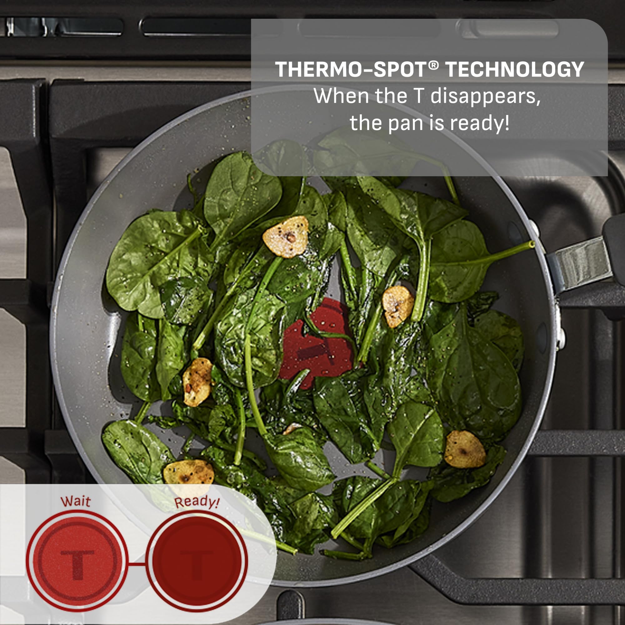 Thermo-Spot Technology: Our unique heat indicator turns solid red when pans are properly preheated so you'll know exactly when to start cooking for perfect results every time.