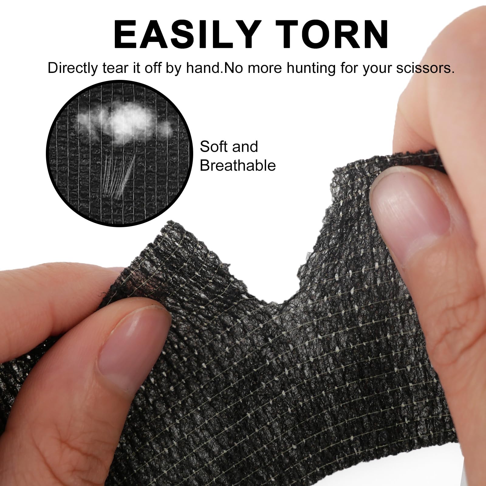 【No Residue & Effortless Application】Unlike ordinary tapes, this self-adhesive bandage sticks only to itself, not skin or hair. Easily tear b hand without scissors—perfect for quick fixes during sports, workouts, or pet emergencies. No pins or clips needed!