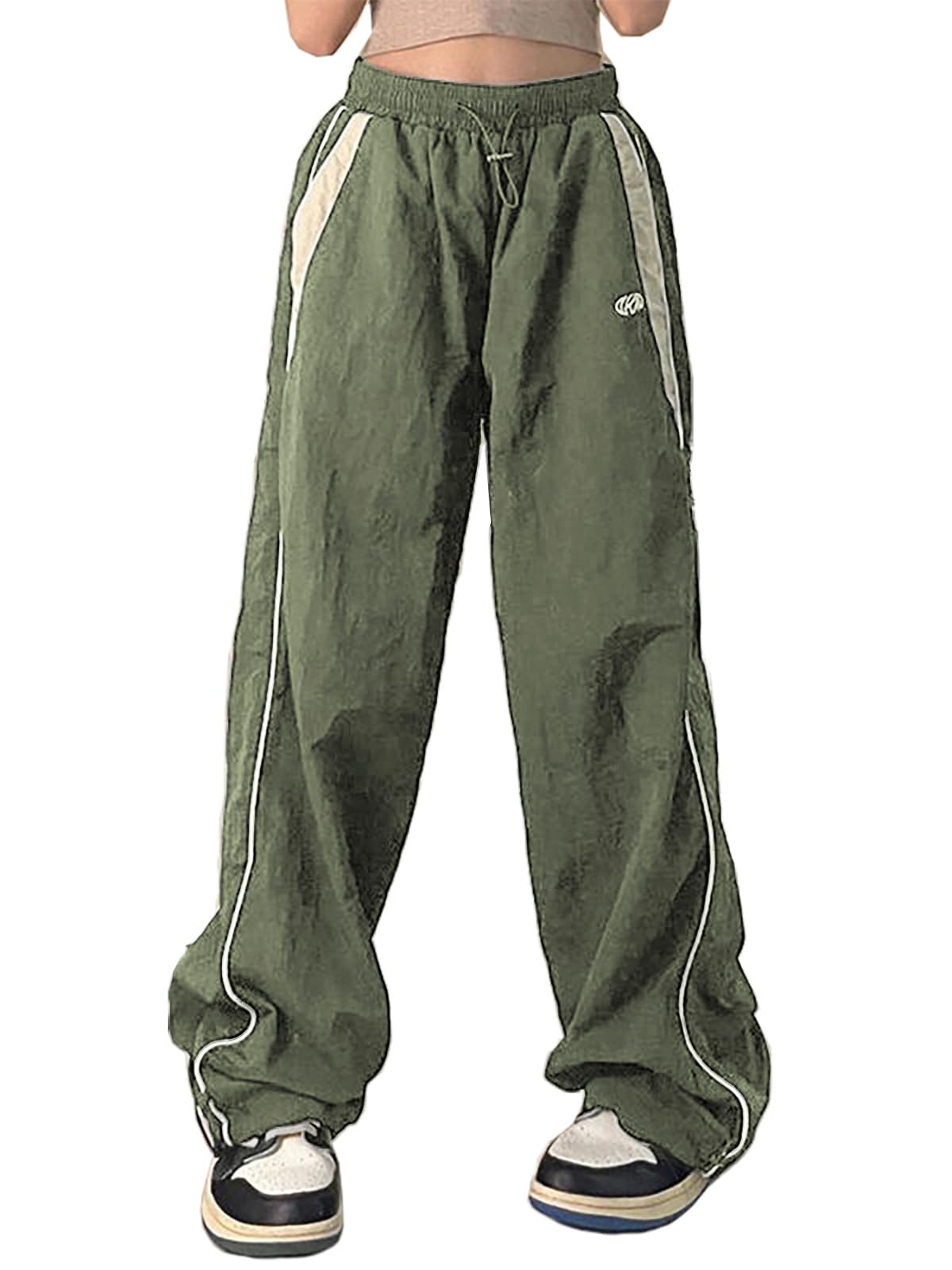 Features: These Y2K Baggy Pants for women are Featuring contrast panels and piping detail along the side. The stretch drawstring toggle waist style ensures a customized and secure fit, while the functional pockets provide convenience for storing your essentials