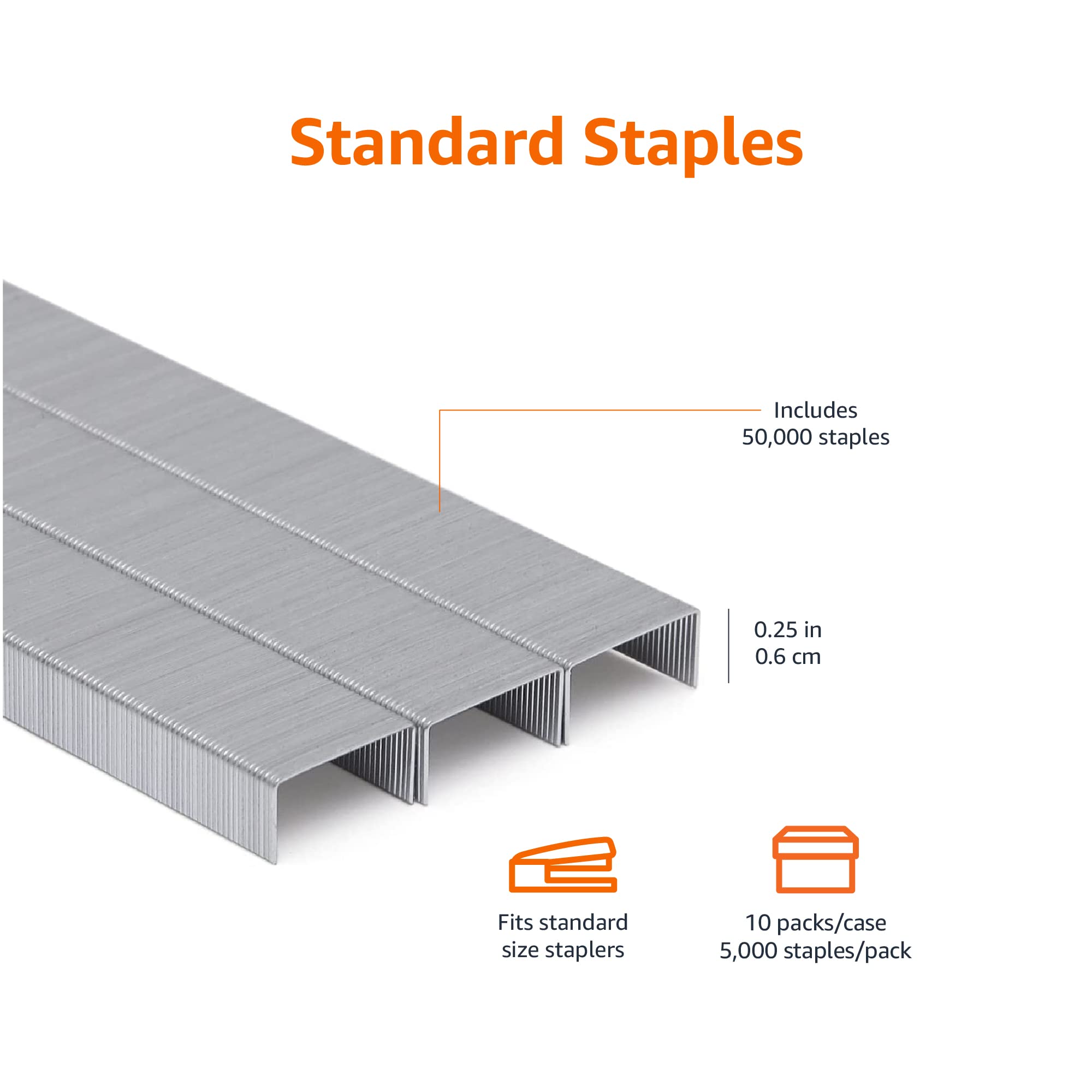 Product Description Amazon Basics Standard Stapler Staples, 1/4" Length, 50000 Count, 10-Pack of 5000 From the Manufacturer Amazon Basics