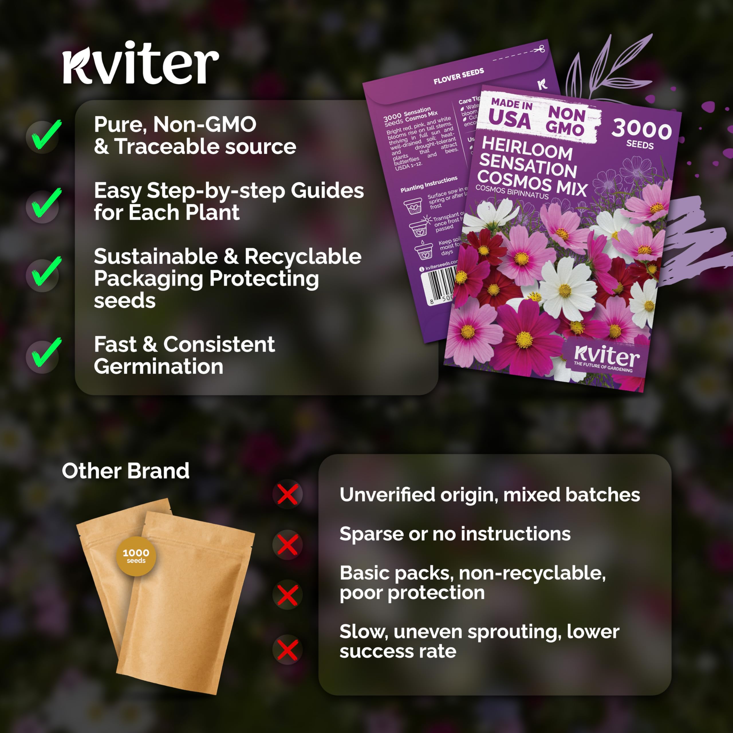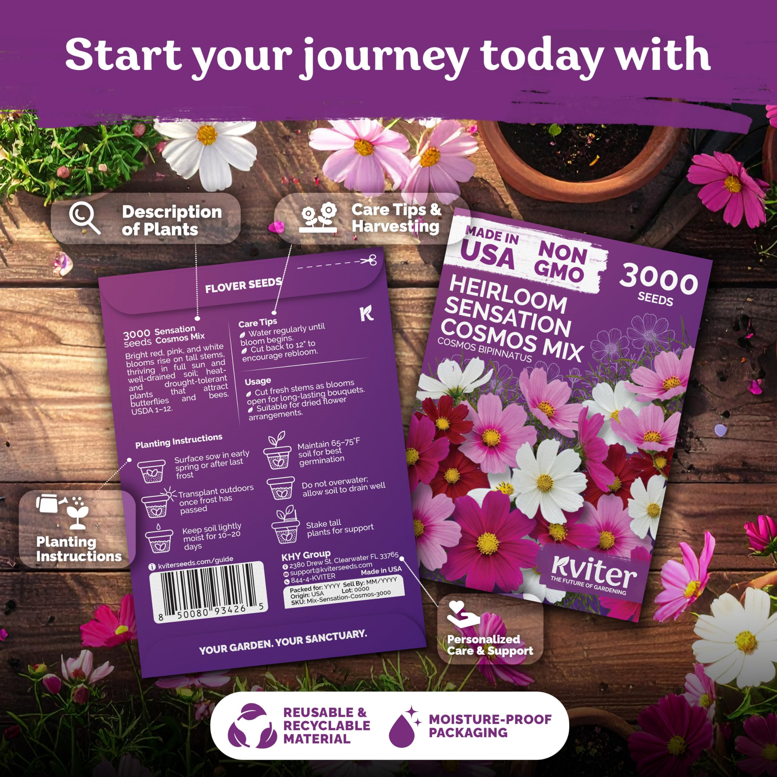 Excellent Cut Flower Variety: Cosmos plants live grow long stems with a 7–10 day vase life. These heirloom cosmos seeds 2026 are perfect for cut flower seeds, dried arrangements, and continuous seasonal harvesting.