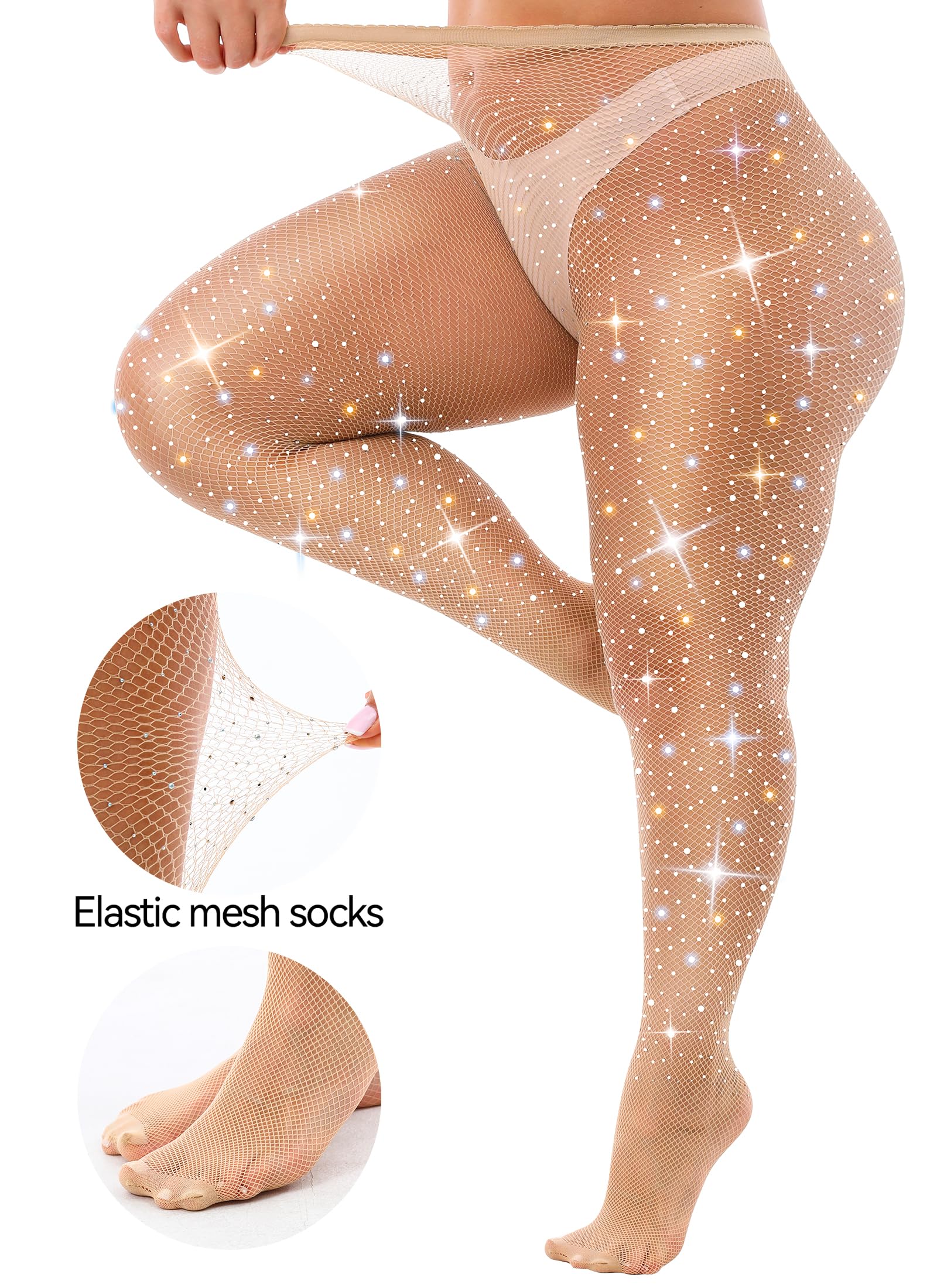 3XL Plus Size Sparkle Fishnet Stockings, Sparkle Rhinestone, Classic Fishnet style, High waist stockings,waistband, glitter net tights, rhinestone fishnets pantyhose, fishnet gives a geometric effect on legs.
