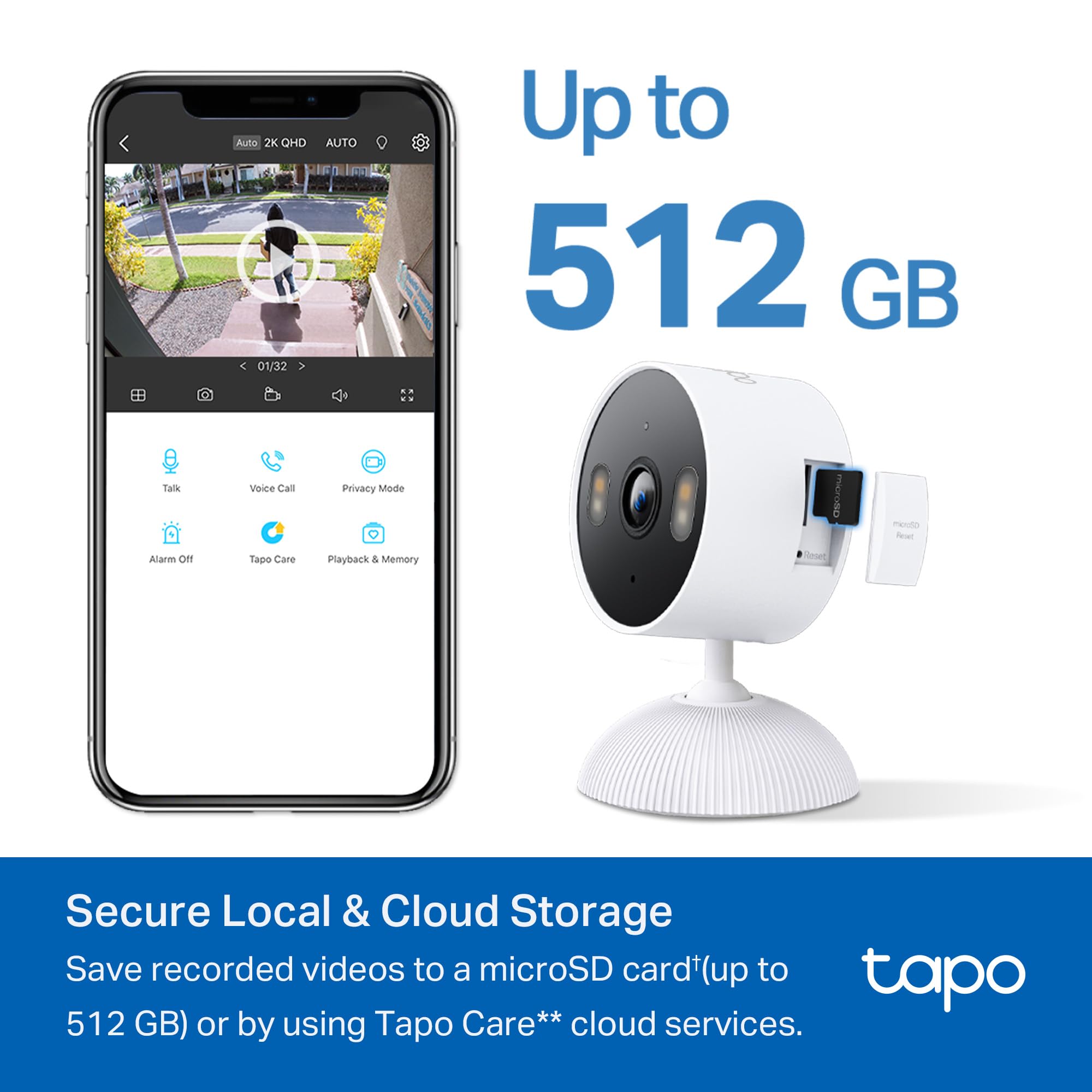 ๐๐จ ๐๐ฎ๐๐ฌ๐๐ซ๐ข๐ฉ๐ญ๐ข๐จ๐ง ๐๐ญ๐จ๐ซ๐๐ ๐ ๐๐ฉ๐ญ๐ข๐จ๐ง - Store recordings on a microSD card at no costโ (up to 512GB) or subscribe to Tapo Care's cloud storage.ยง