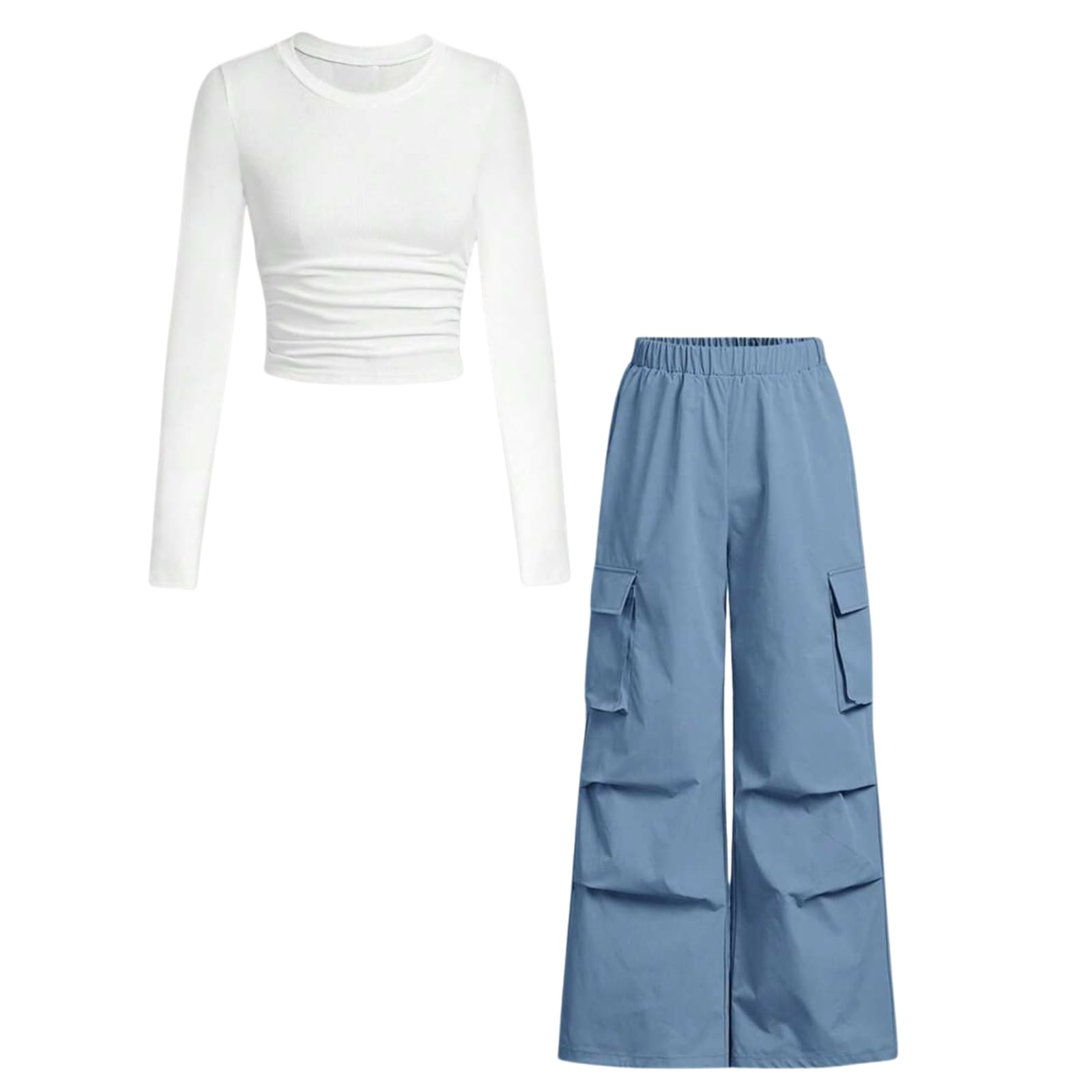 🎨 Stylish Design Details - Features a ruched long sleeve sweater top with a classic crew neck and trendy cargo jogger pants. The fashionable combo blends casual comfort with modern tween girls' fashion.
