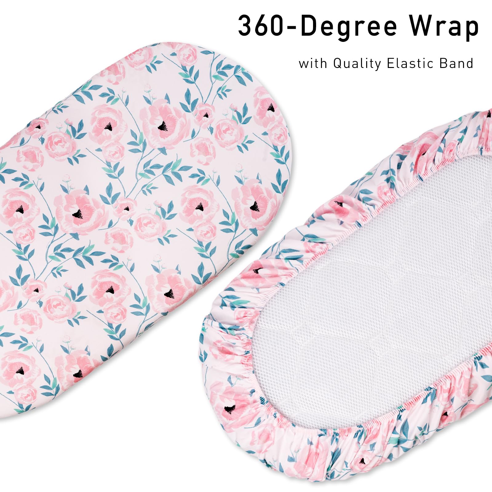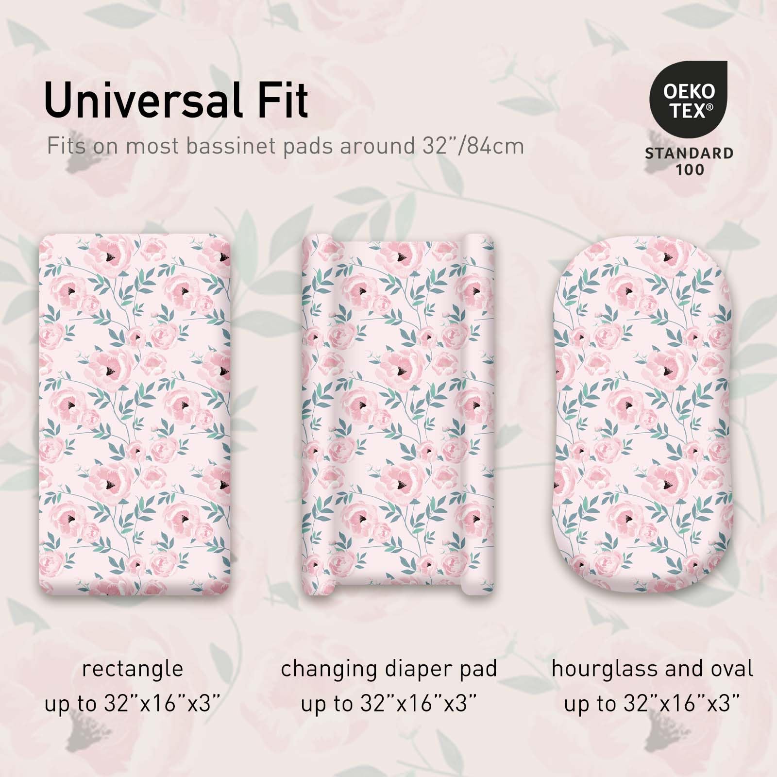 PARENT-FRIENDLY DESIGN: Our baby bassinet sheets that are incredibly easy to install and use. Featuring stylish floral patterns, they add a decorative touch to the nursery, perfect for capturing precious growth moments and milestone in photos. Compatible with most bassinets, loungers, cradles, and co-sleepers, fitting standard, oval, round, rectangular, and hourglass-shaped mattresses