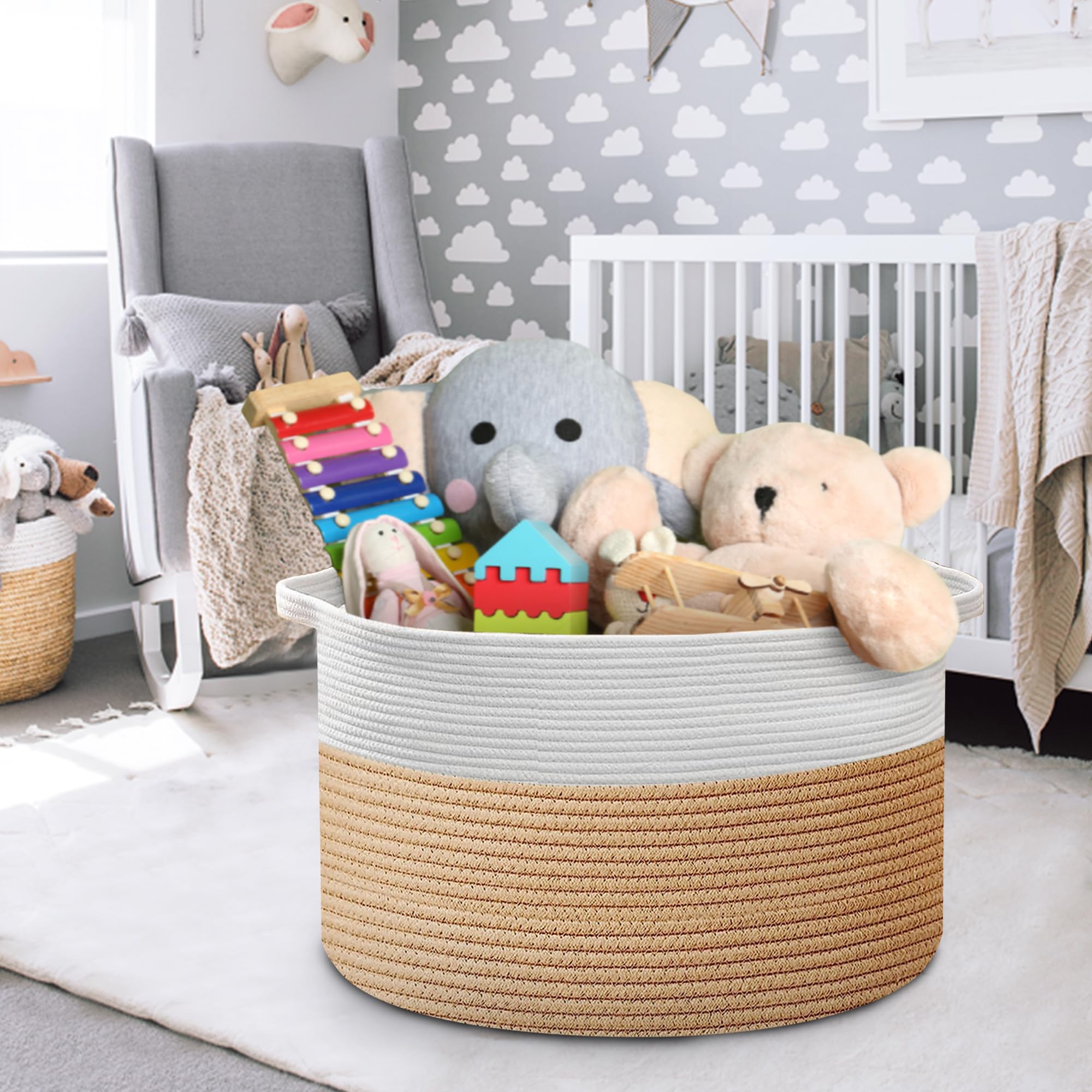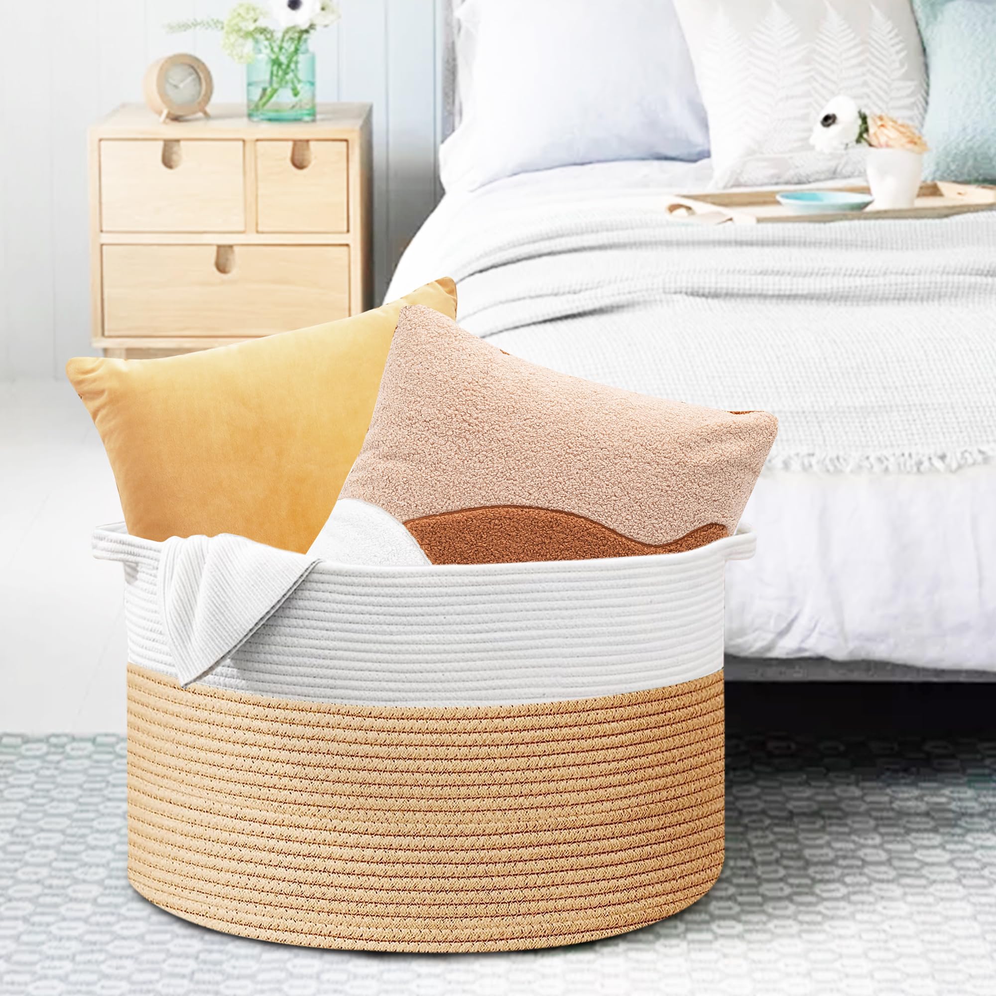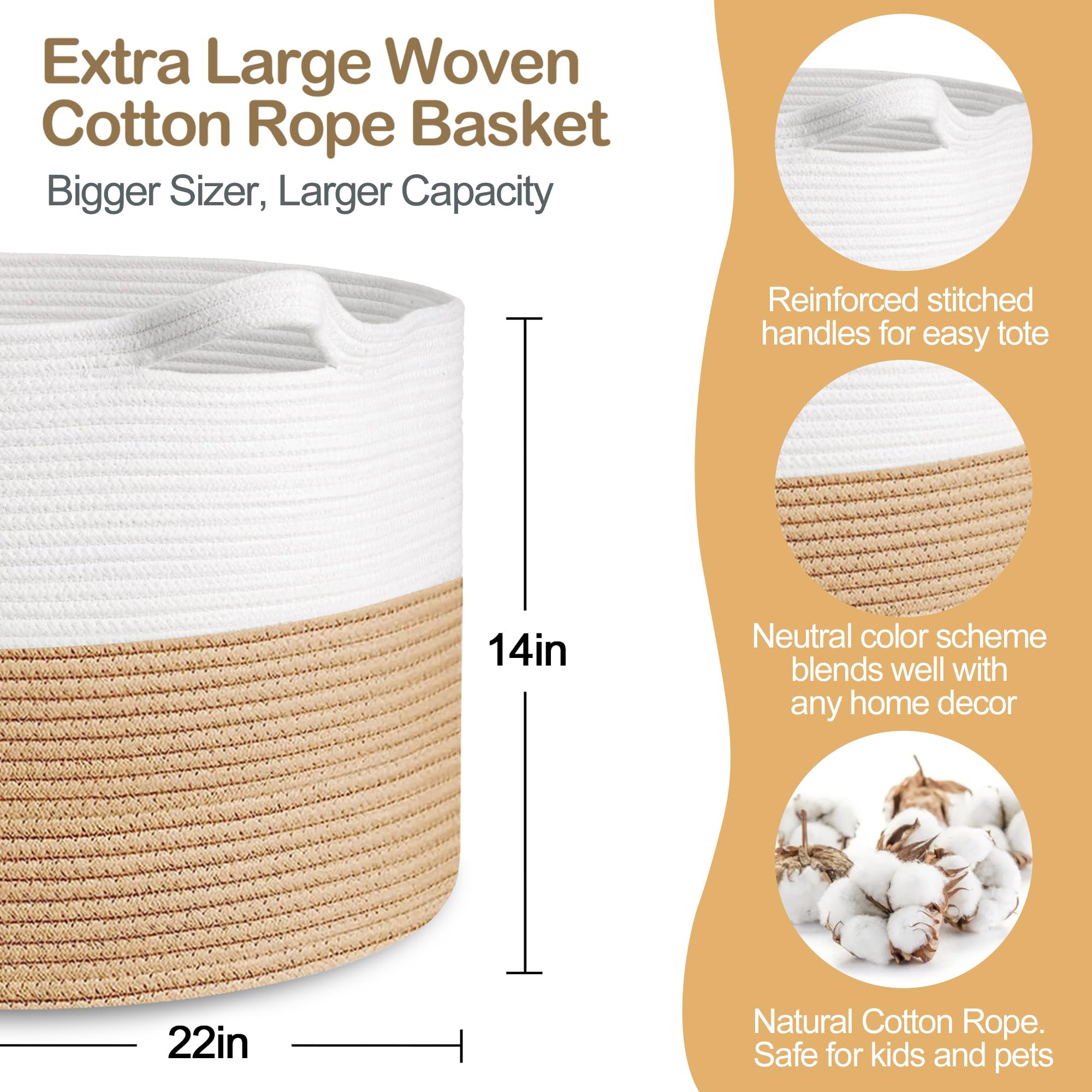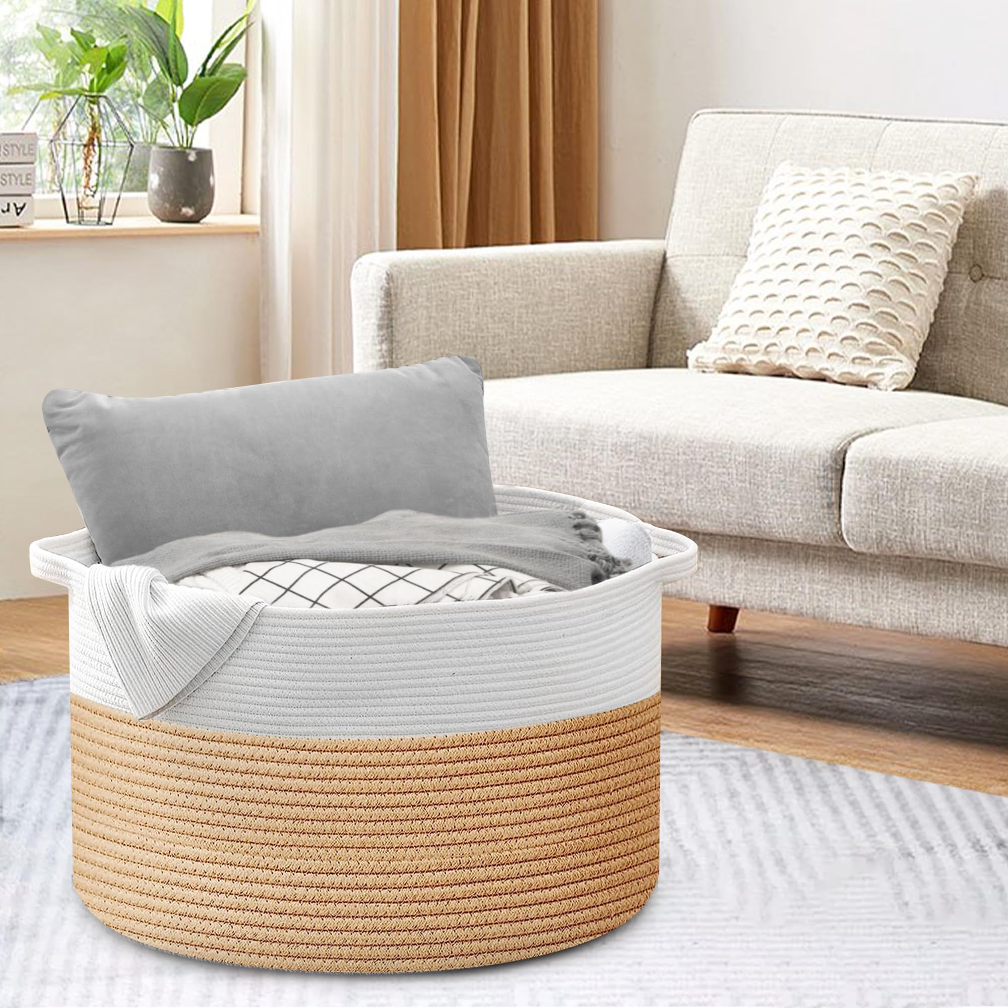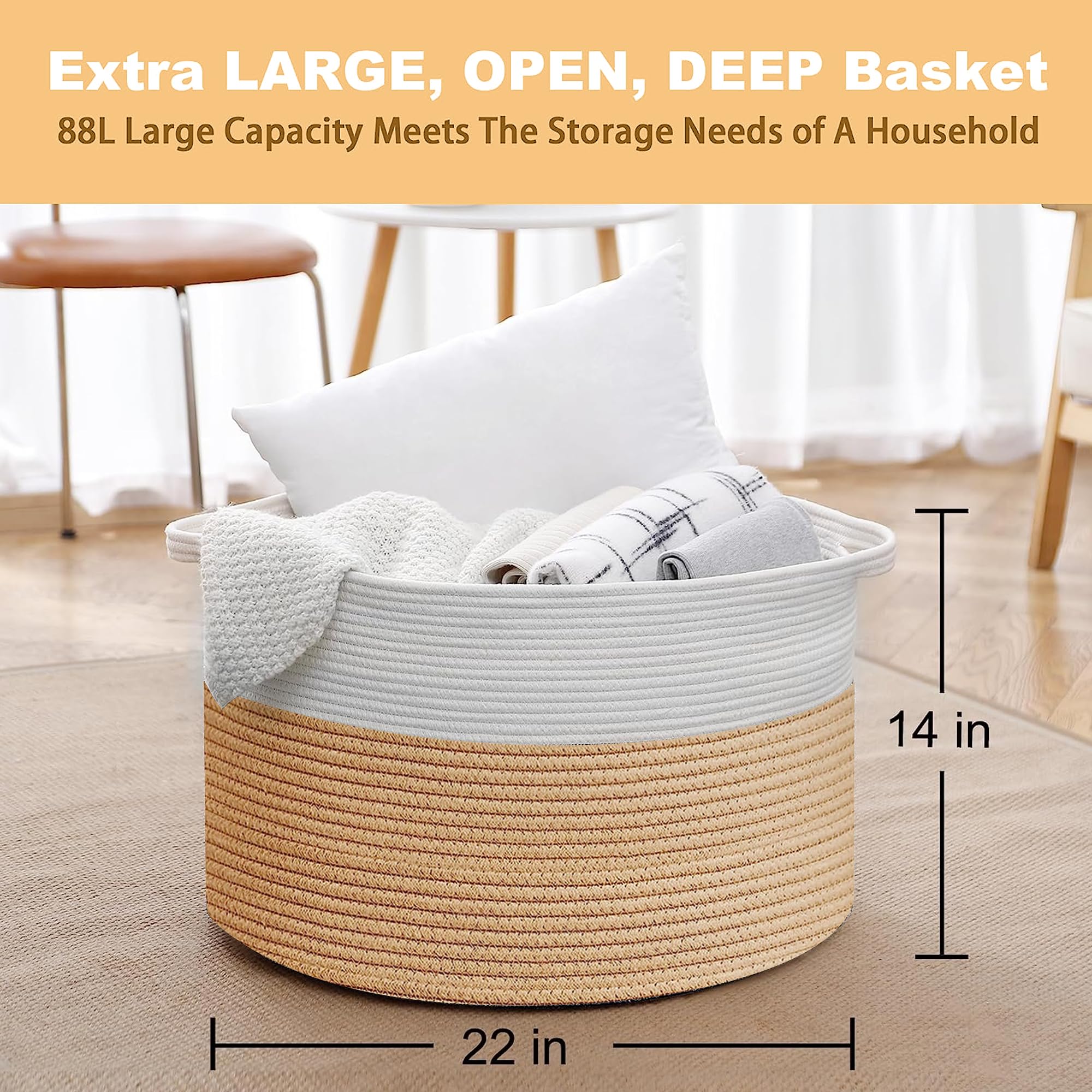 Durable Cotton Rope Living Room Storage: The XXXL laundry organization storage basket is made of natural cotton rope. Sturdy and durable cotton rope storage baskets can withstand weight and regular use without wear and tear. Rope material is soft and safe for baby. Breathable open top can make the fresh air circulate through the basket can fully dry clothes of daily moisture.