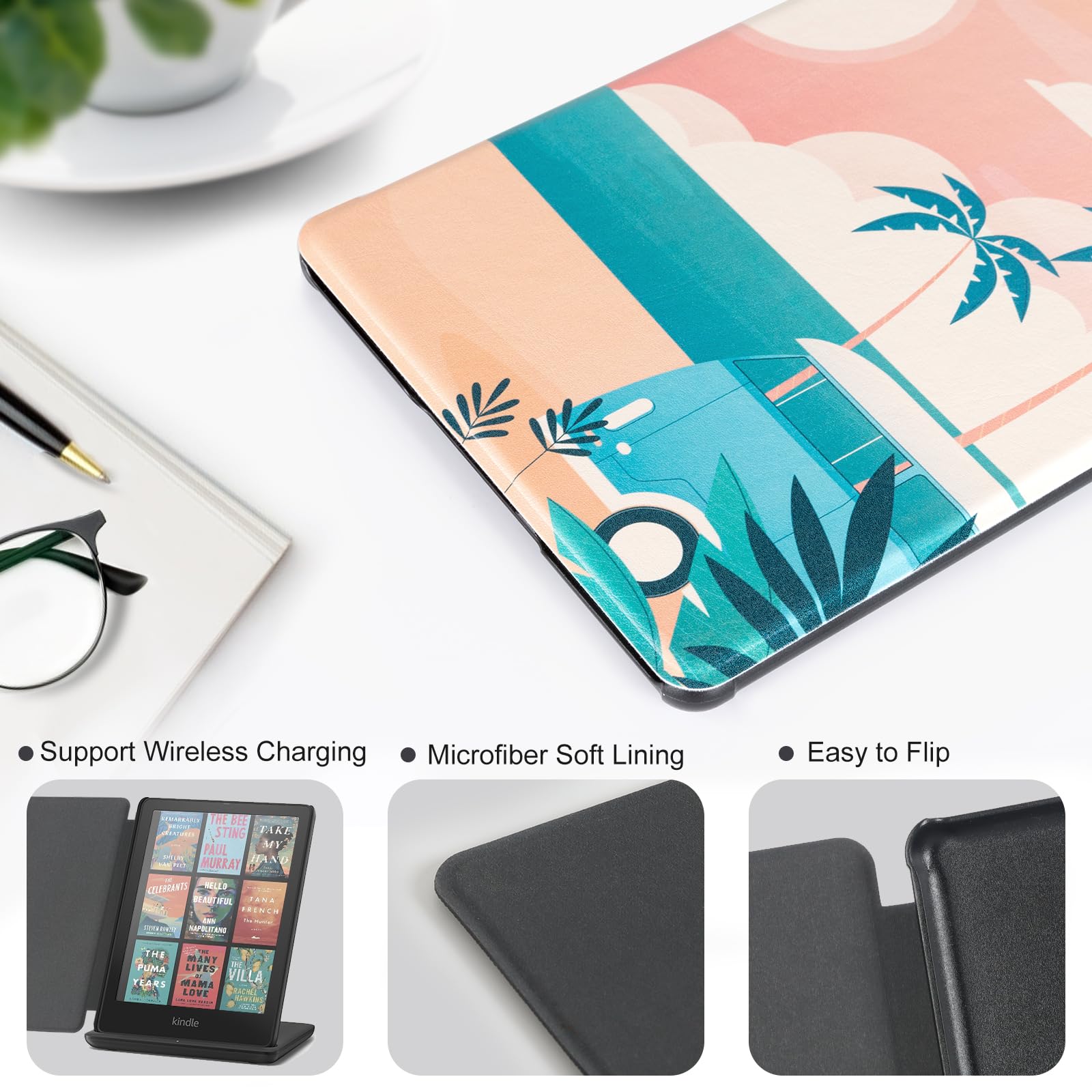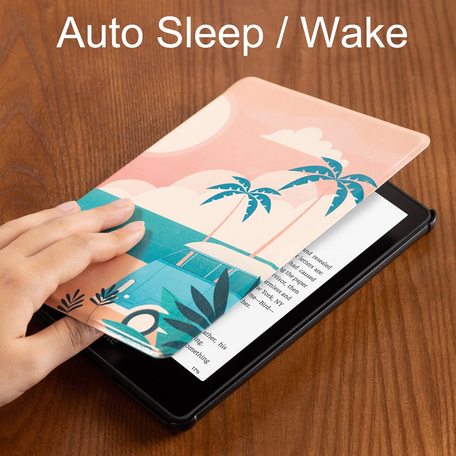 AUTO WAKE/SLEEP: With the built-in smart cover,your e-reader will be woke up or put to sleep seamlessly. All you need to do is to enjoy reading.Magnetic Closure: The magnetic design helps the kindle cover close securely, providing a 360 degree protection for your device