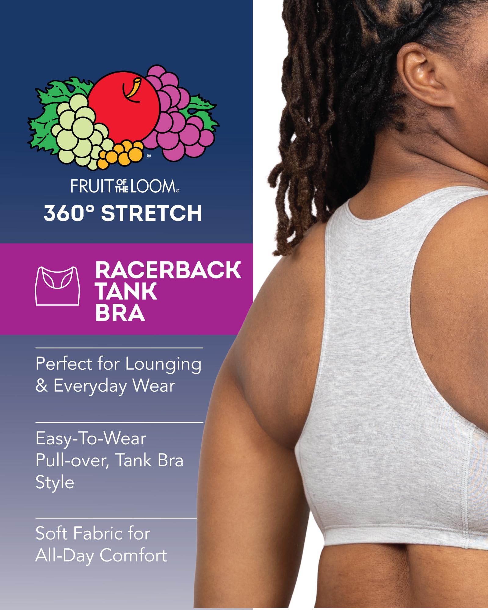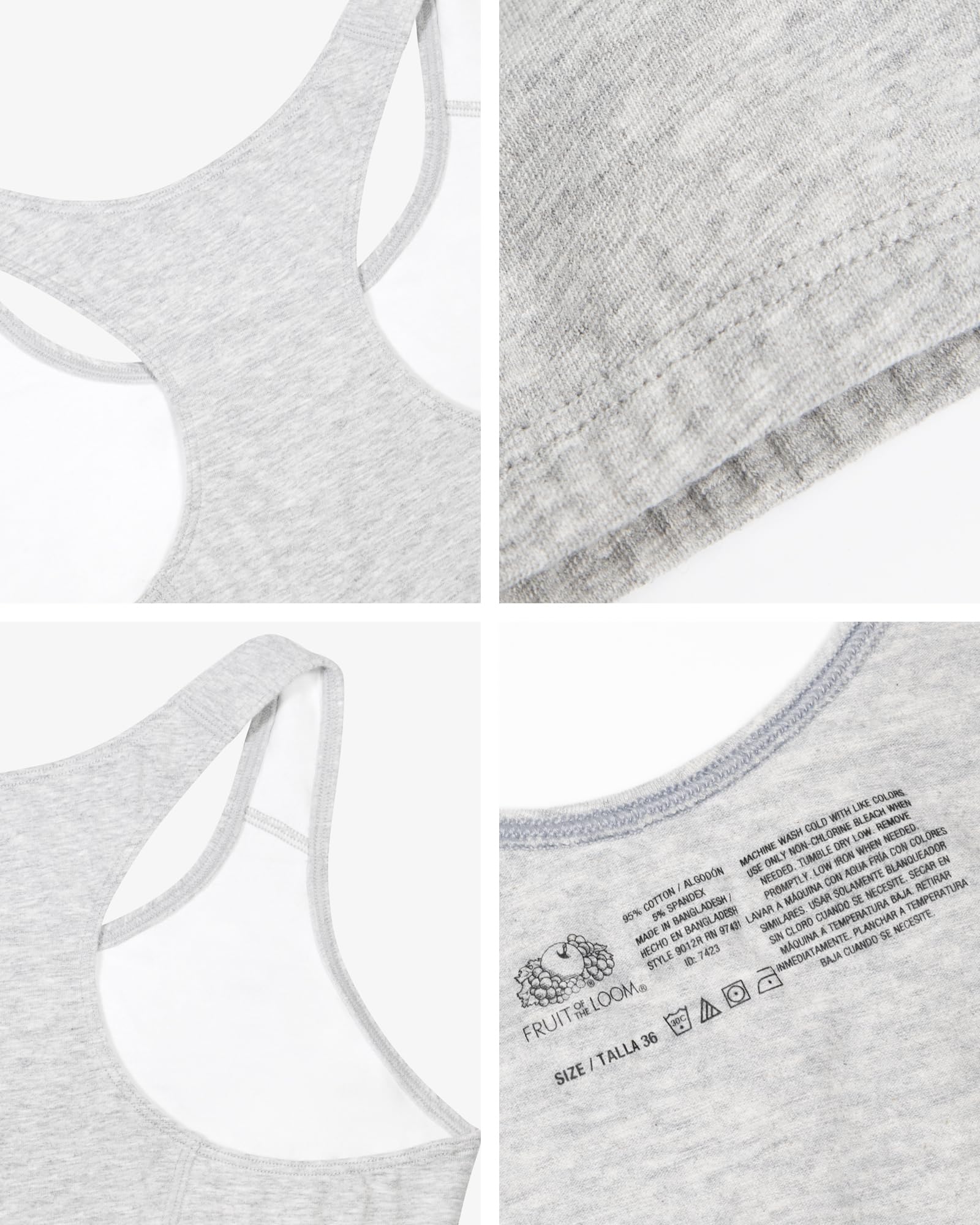 Description The Fruit of the Loom Woman's Tank Style Sport Bra is a smart addition to anyone's wardrobe. Whether you're wearing it for leisure or for the gym, this soft cotton sport bra keeps you supported while keeping a smooth appearance. An active lifestyle requires a brand that can give support and comfort. Fruit of the Loom has been a leader in affordable undergarments for more than 160 years. Our Unconditional Guarantee insures that you get the best product every time or your money back. So run, jump, bike, or sprint happy with Fruit of the Loom.