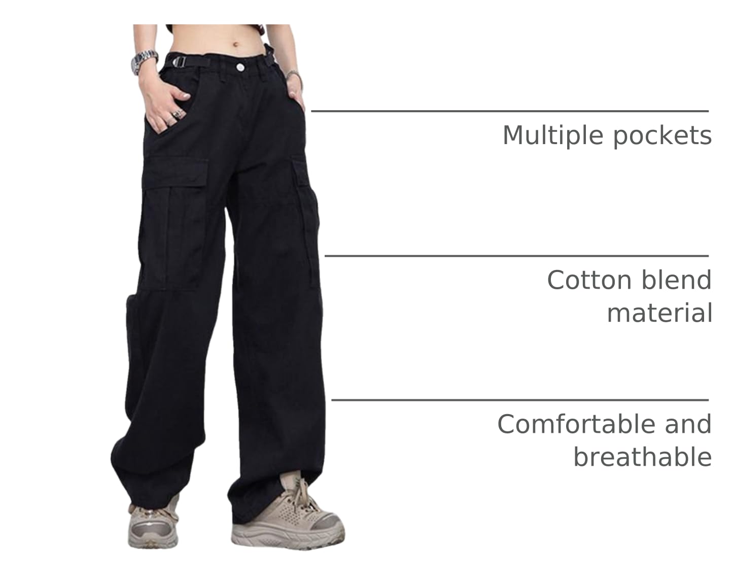 Material: Women baggy cargo pants were made of cotton blend, comfortable, breathable, lightweight, soft, comfy, durable.