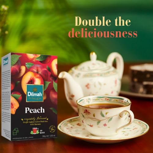 Juicy Peach Flavor & Aromatic Experience – A light and bright Ceylon tea infused with sweet and tangy peach notes for a refreshing, uplifting sip.
