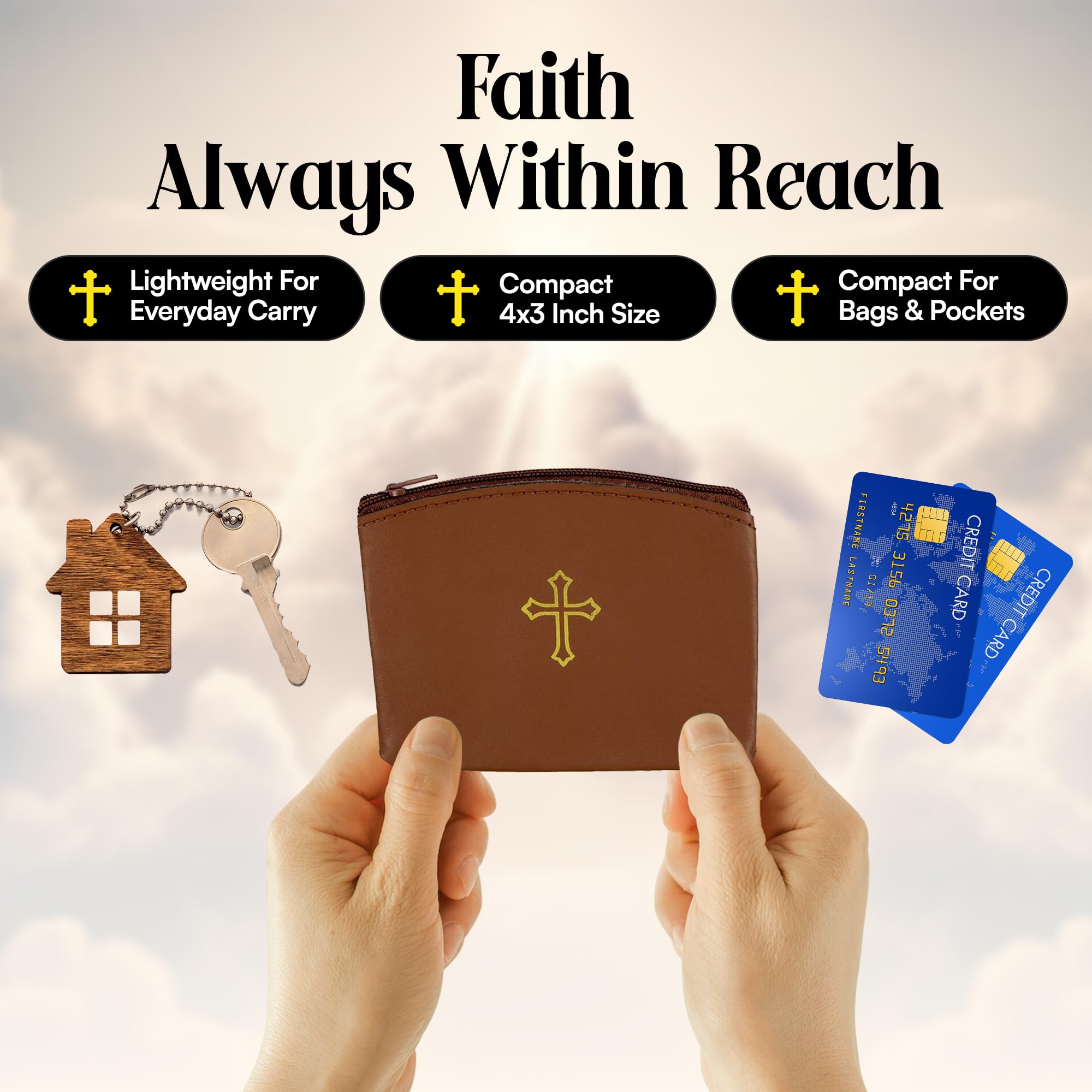 COMPACT FIT FOR HAND OR POCKET – Measuring 4 x 3 inches (10.2 x 7.6 cm), this leather pouch fits easily in your hand, pocket, or purse for convenient access during prayer. A thoughtful choice for anyone who keeps their faith close to the heart.