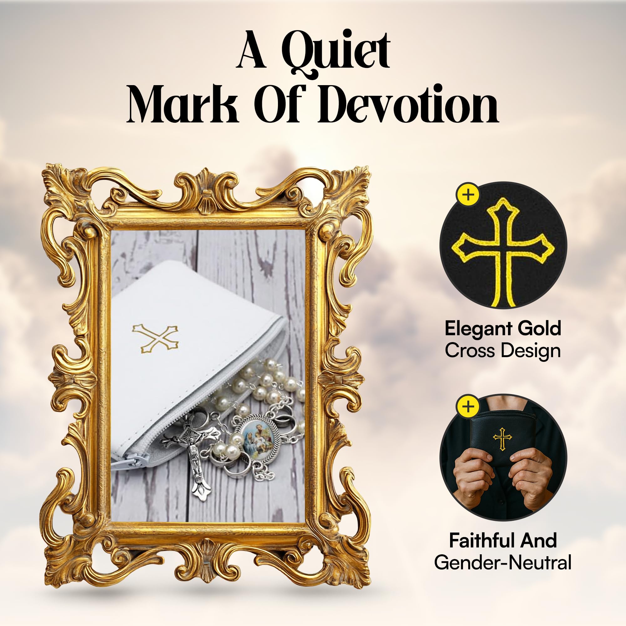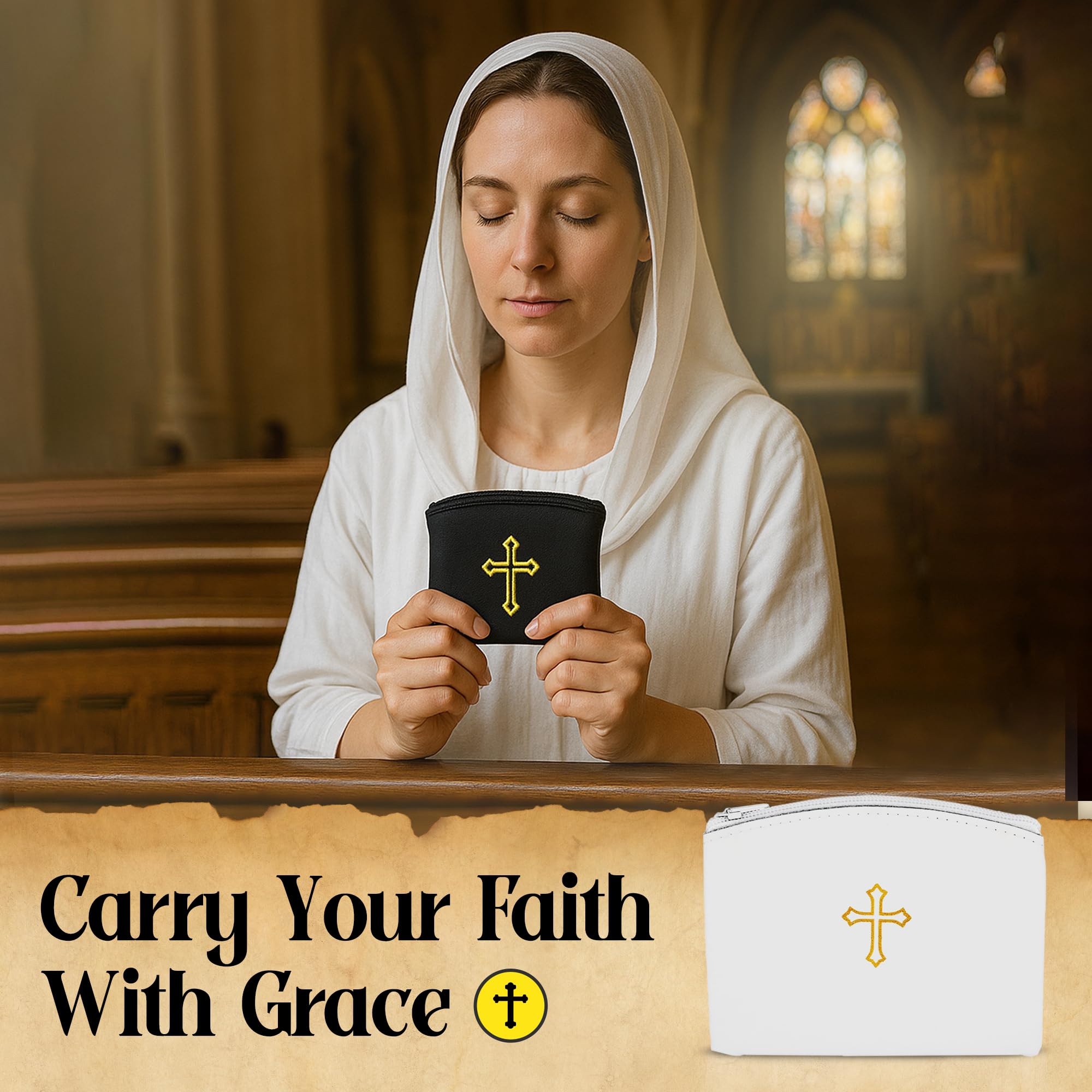 PROTECT & ORGANIZE ON THE GO – Used to store and carry rosaries, jewelry, credit cards, and small keepsakes, this pouch keeps essentials secure whether at home, on a church pew, or while traveling. It can be placed on a nightstand or altar when not in use.