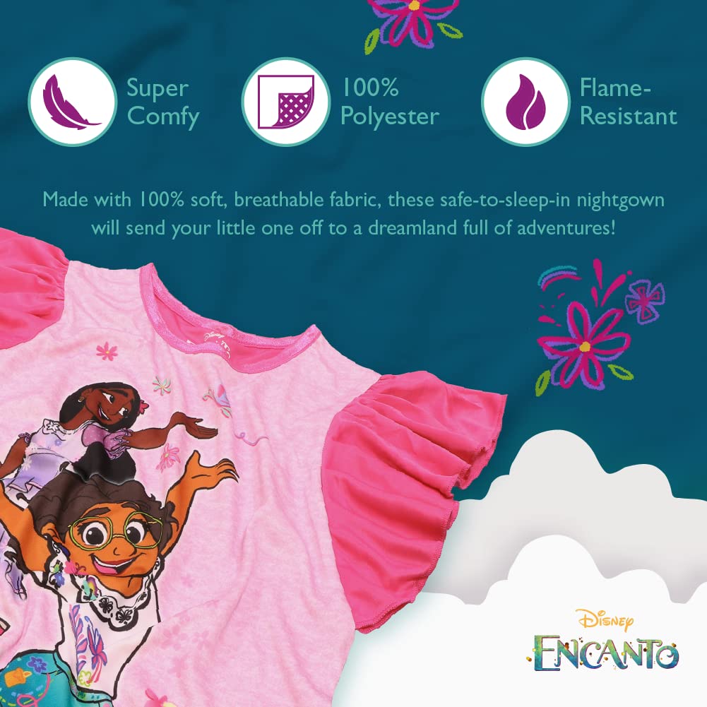 “ENCANTO” PAJAMAS: Get your little girl ready for bedtime fun with Mirabel, Isabella, Luisa, and more in this girls’ nightgown. She’ll dream of magical adventures with her favorite characters! Officially licensed Disney merchandise.