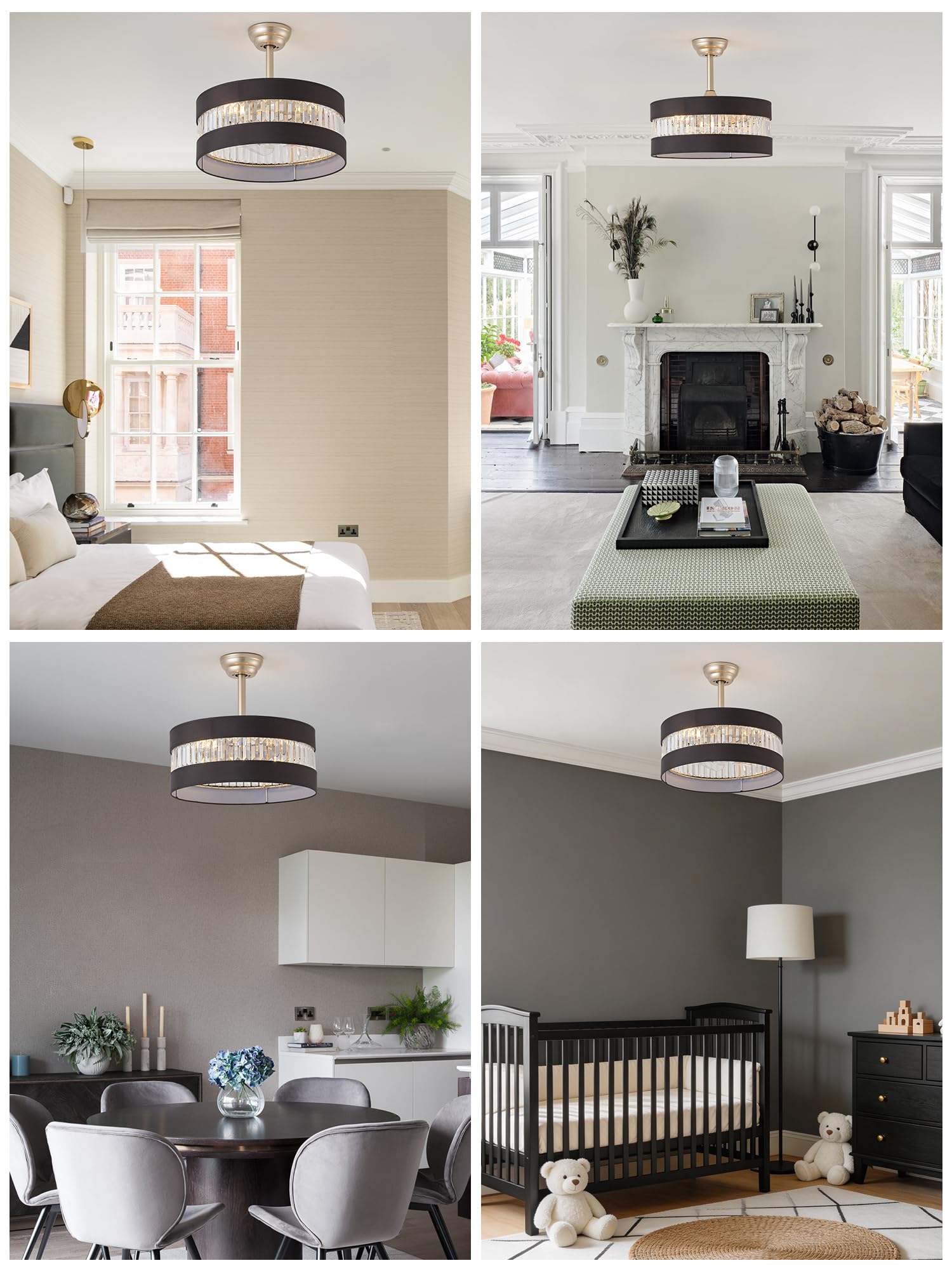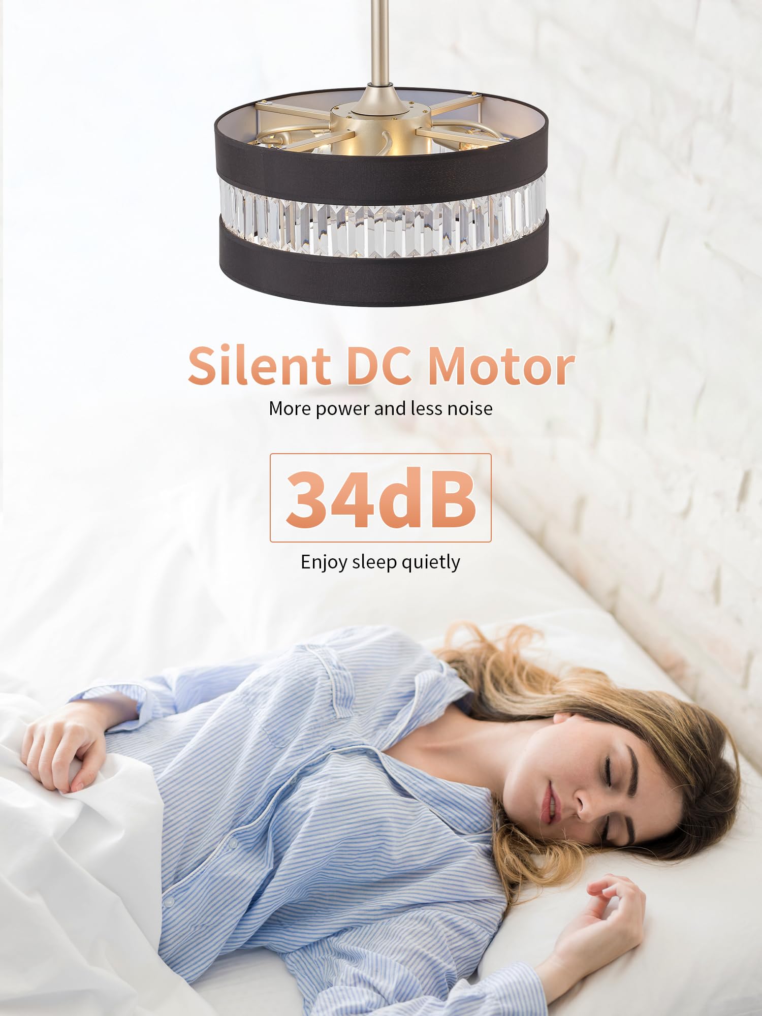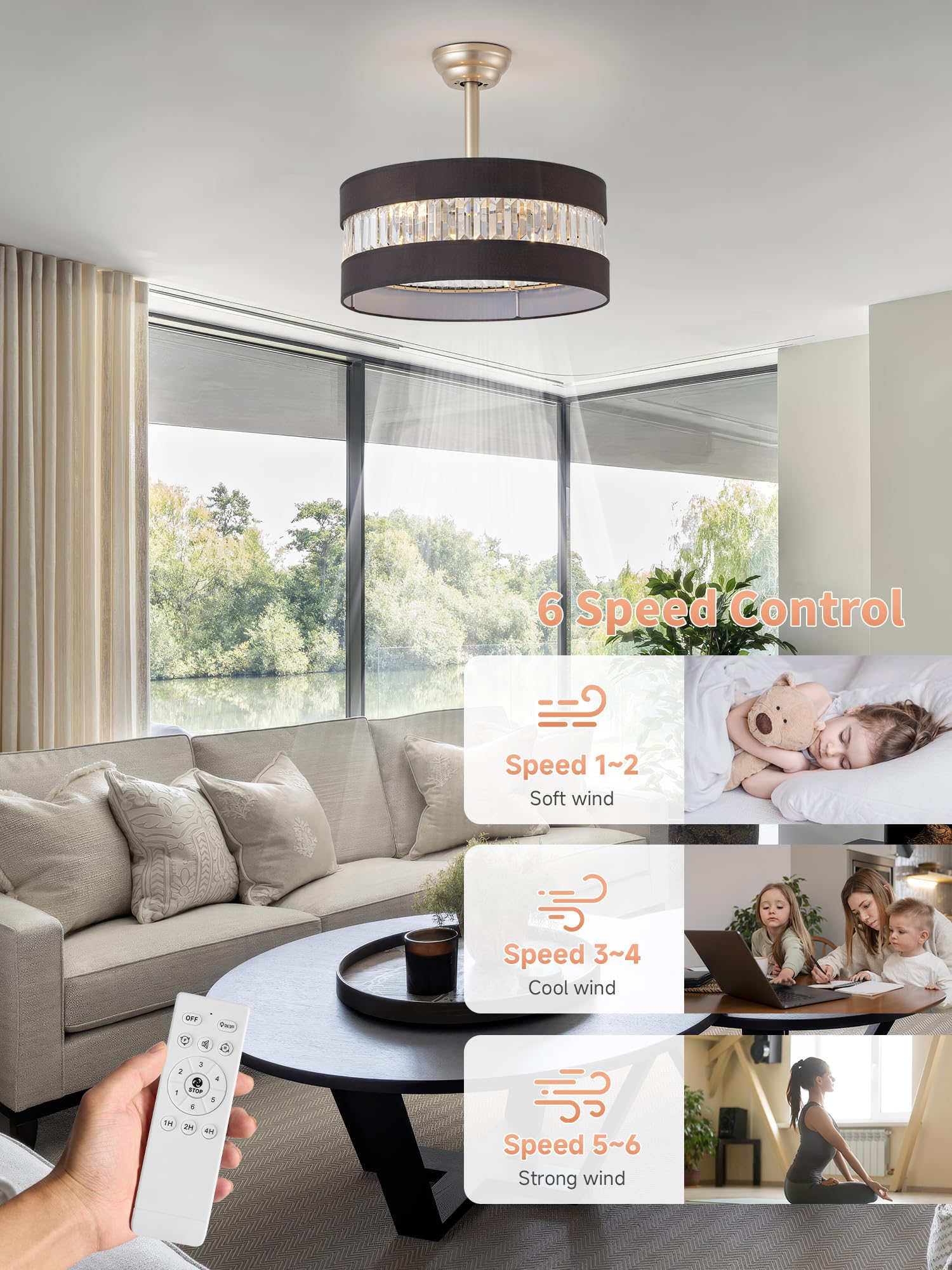 Quiet Night: End the torture of noise and enjoy a peaceful dream! Our black and gold crystal ceiling fans with lights is as quiet as the stars in the night sky when it is in operation, allowing you to easily fall into a sweet sleep. You can set the black and gold ceiling fan with light to automatically turn off after 1, 2 or 4 hours, and its convenient timer function ensures that the black and gold crystal ceiling fan with light will automatically turn off at the right time while you are sleeping, giving you complete peace of mind.