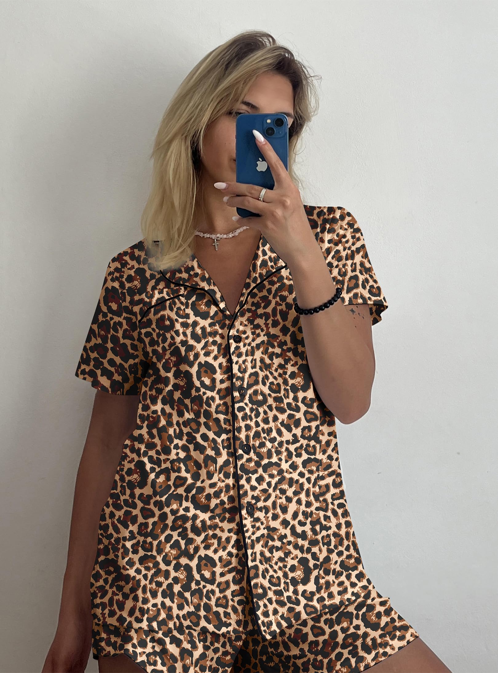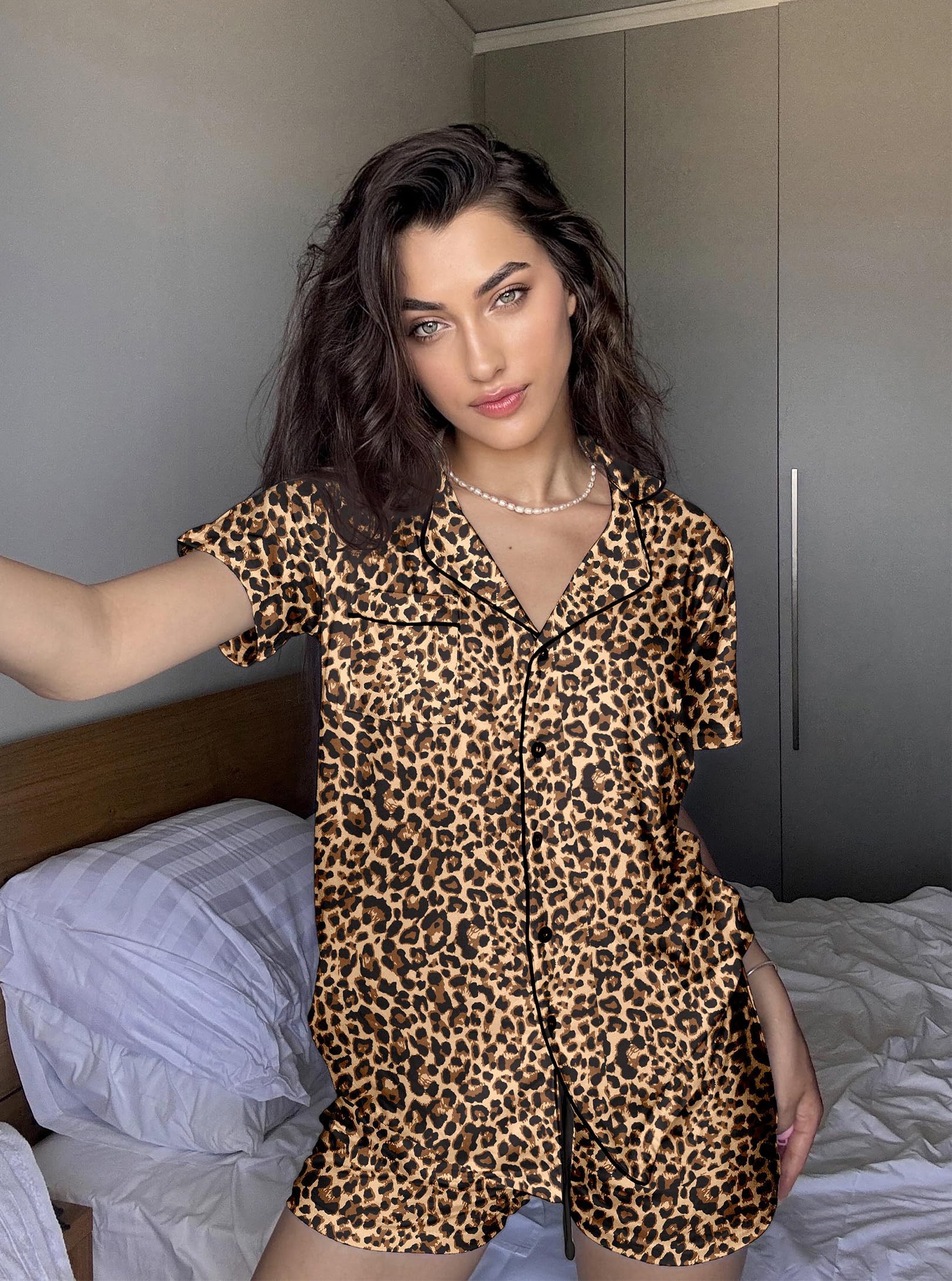 HUMANIZATION DESIGN: Features a hip-length button-down top with notch collar and chest pocket. Shorts include a chiffon drawstring elastic waist for maximum comfort.
