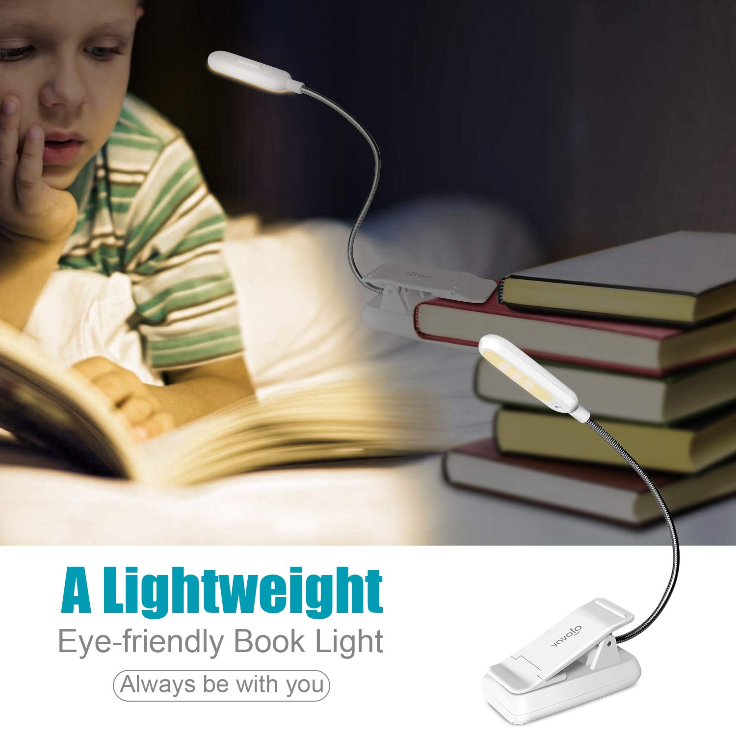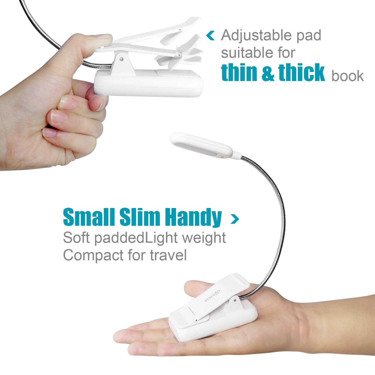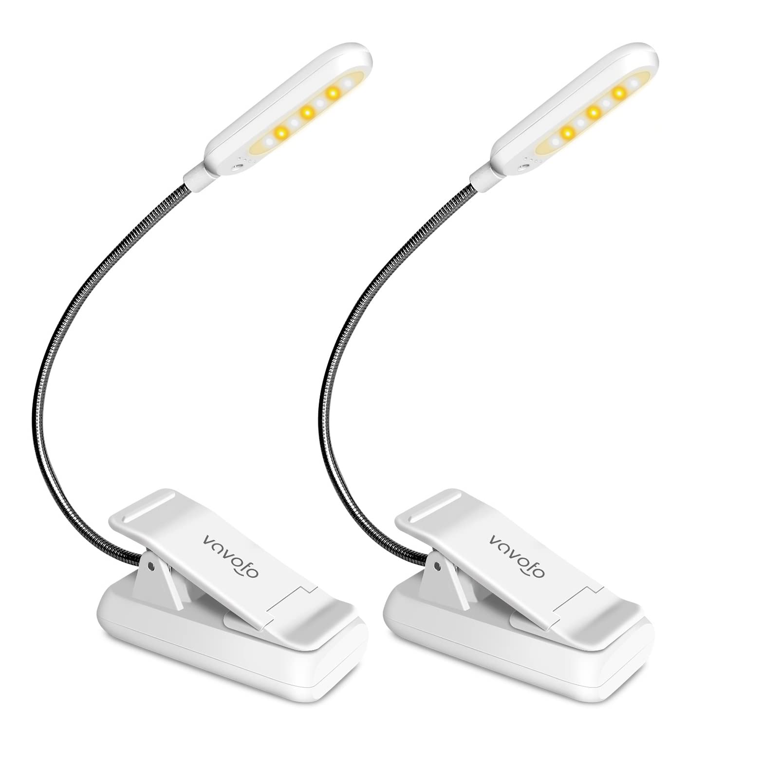 【360°Flexible Goose Neck & Non-slip Clip Design】- The Vavofo's book light has the 360 degree adjustable neck with multi use non-slip clip which allows you to position the light exactly where you need it, creating the perfect private reading space for you while reading in bed, in college dorm, or on a plane, train, or bus. It can also be placed on the tabletop, work surface, etc. lightweight, portable, & travel-friendly only 2.59oz weight. 2 Pack book lights choice is more convenient