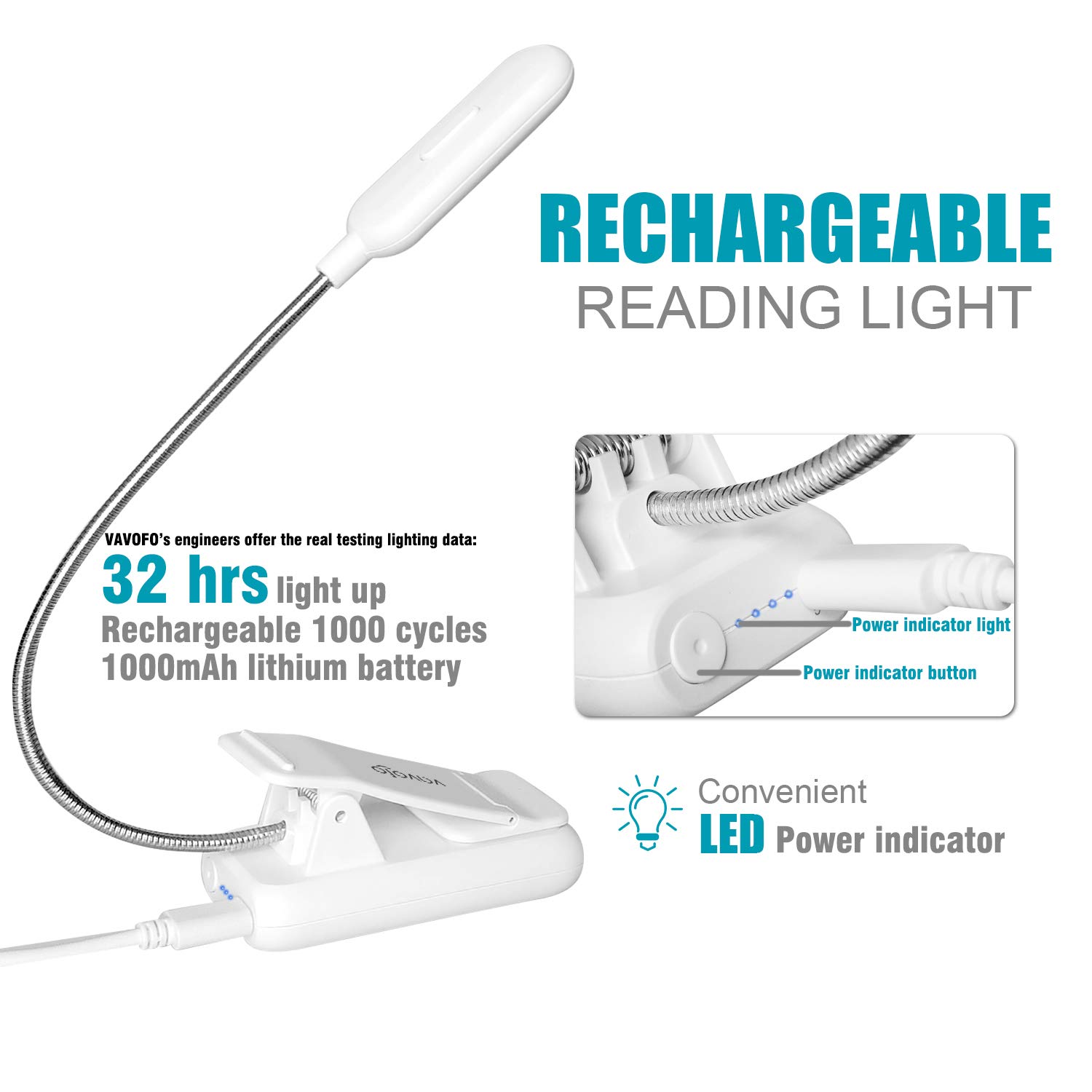 【Rechargeable & Long-lasting Lighting】 The battery life of book light is great. Usb rechargeable with a built-in 1000mah lithium battery that can last up to 25 hours of use(at low brightness setting). At high brightness setting, the reading light can last up to 5 hours lighting time. The engineers of Vavofo factory offer the real testing data. Long press to control color temperature, short press to control brightness. No need to buy batteries any more, save money