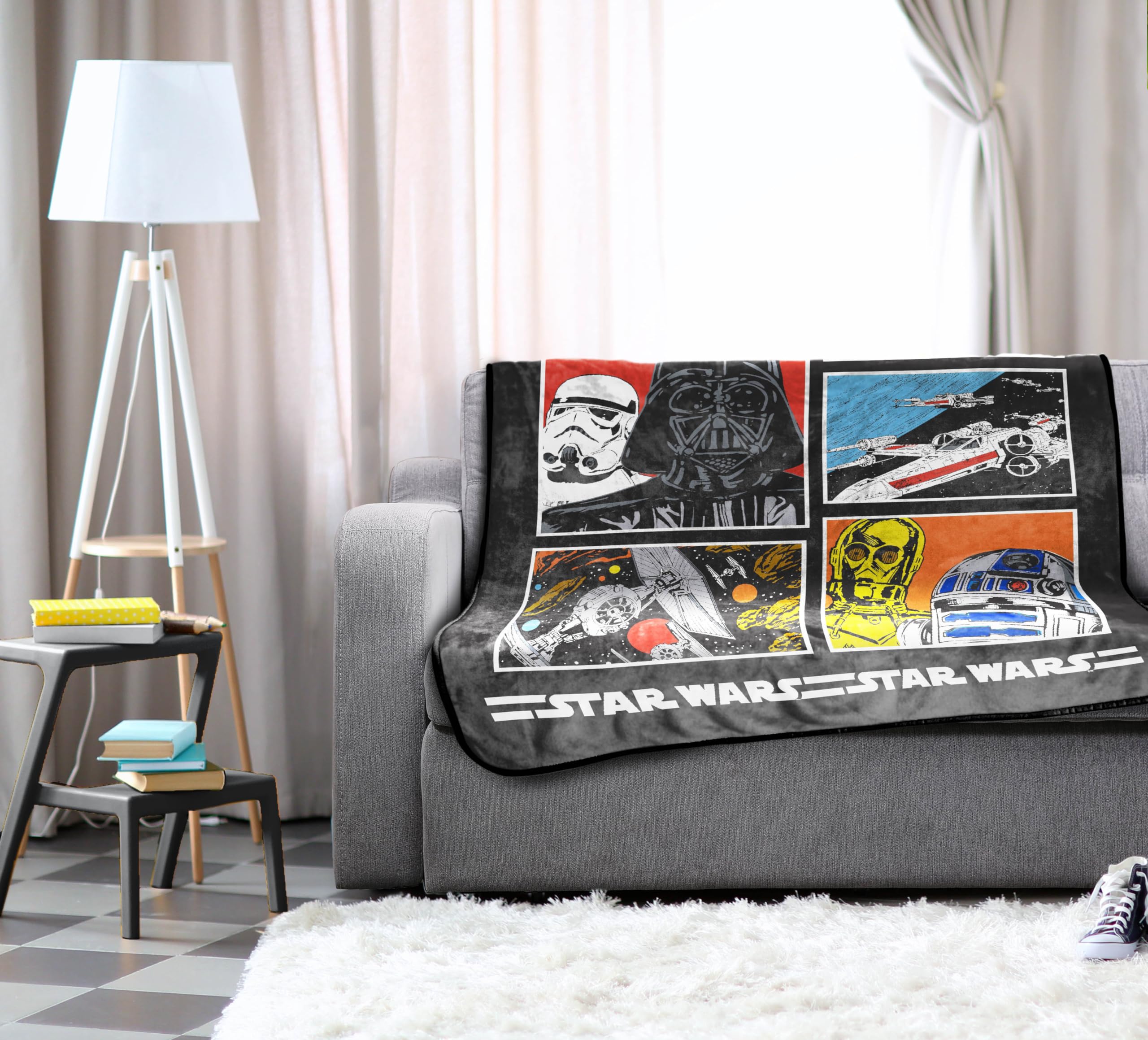 PERFECT FIT & FUN DESIGN - Star Wars throw blanket measures 46 x 60 inches. Add a touch of decorative enchantment to your room with our fashionable and super soft Star Wars throw blanket. Fun and colorful design features your child’s favorite Star Wars characters.