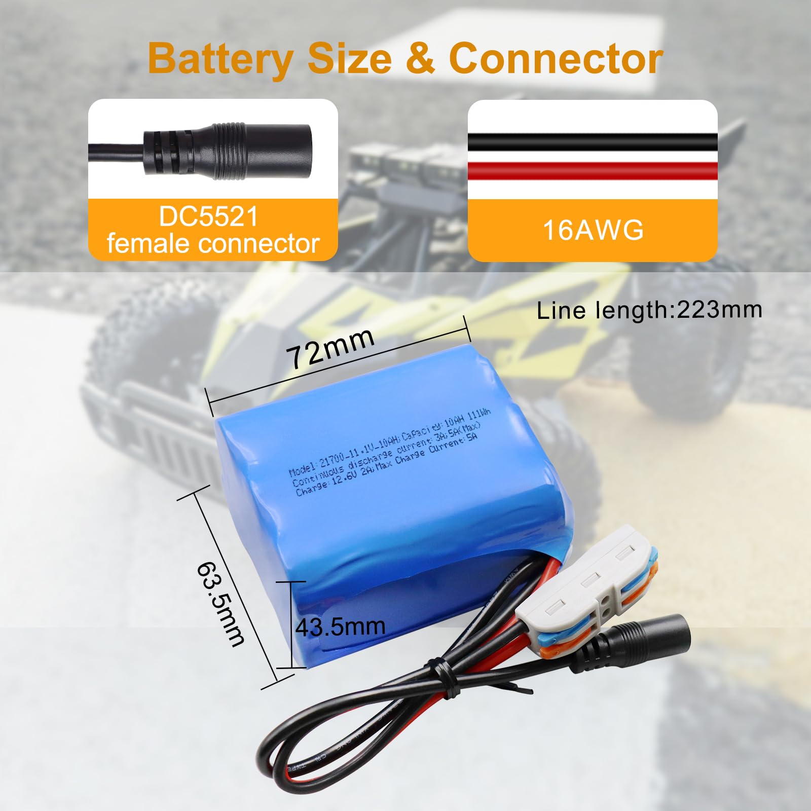 KBT 12V 10000mAh Rechargeable Li-ion Battery, Bare Leads Wire Replacement Battery Pack with 12V Charger Compatible for 12V Devices RC Car, Boat, Robot, DIY, LED Light Kit