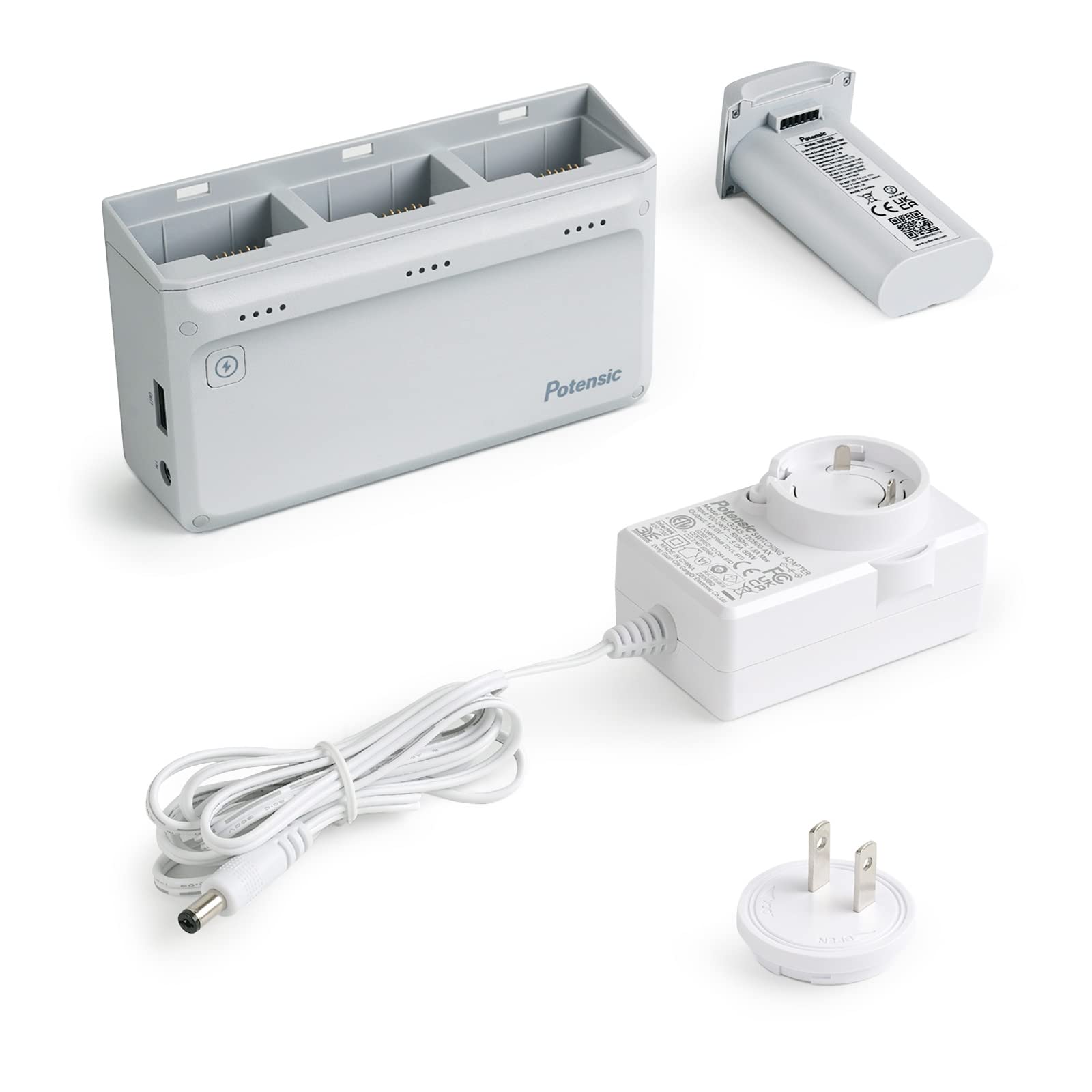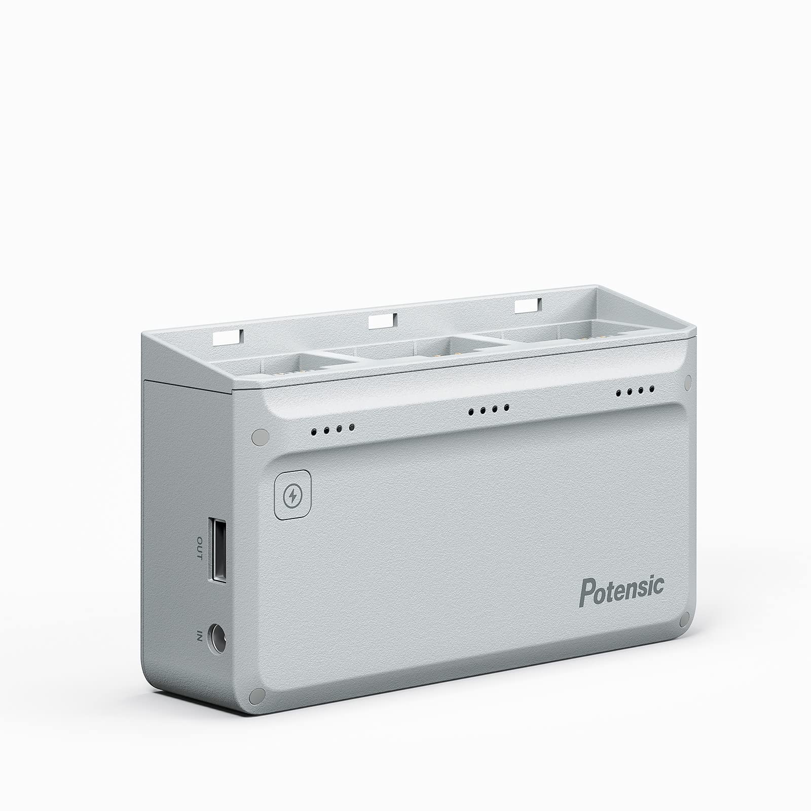 The Potensic charging hub improves efficiency by fully charging all three batteries simultaneously in 90 minutes, and is capable of charging the remote control as well. (Please note that it takes the same amount of time to charge one battery as it does to charge three batteries together)