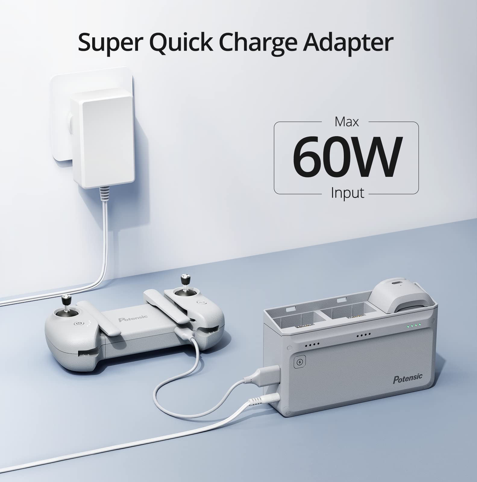 Package Includes: 1 x Charging Hub; 1 x Smart Battery; 1 x Super Quick Charge Adapter(Max 60W Input)