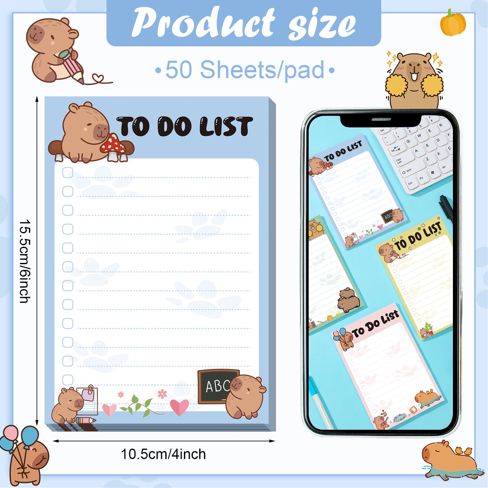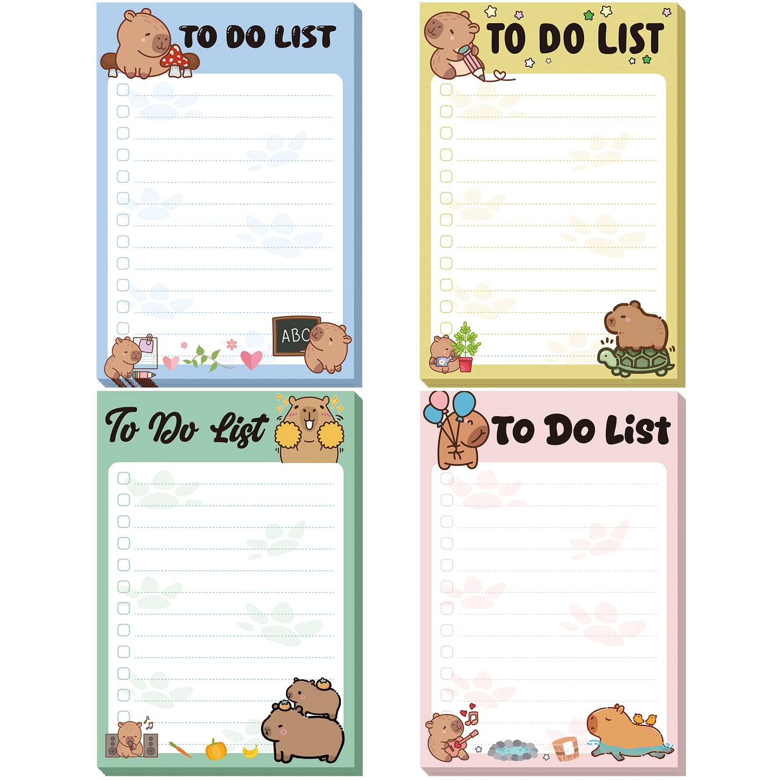 What You Can Get: there will be 4 pads of funny animals to do sticky notes in 4 colors, each capybara notepad contains 50 sheets; Sufficient quantity and various colors will meet your different using and replacement demands