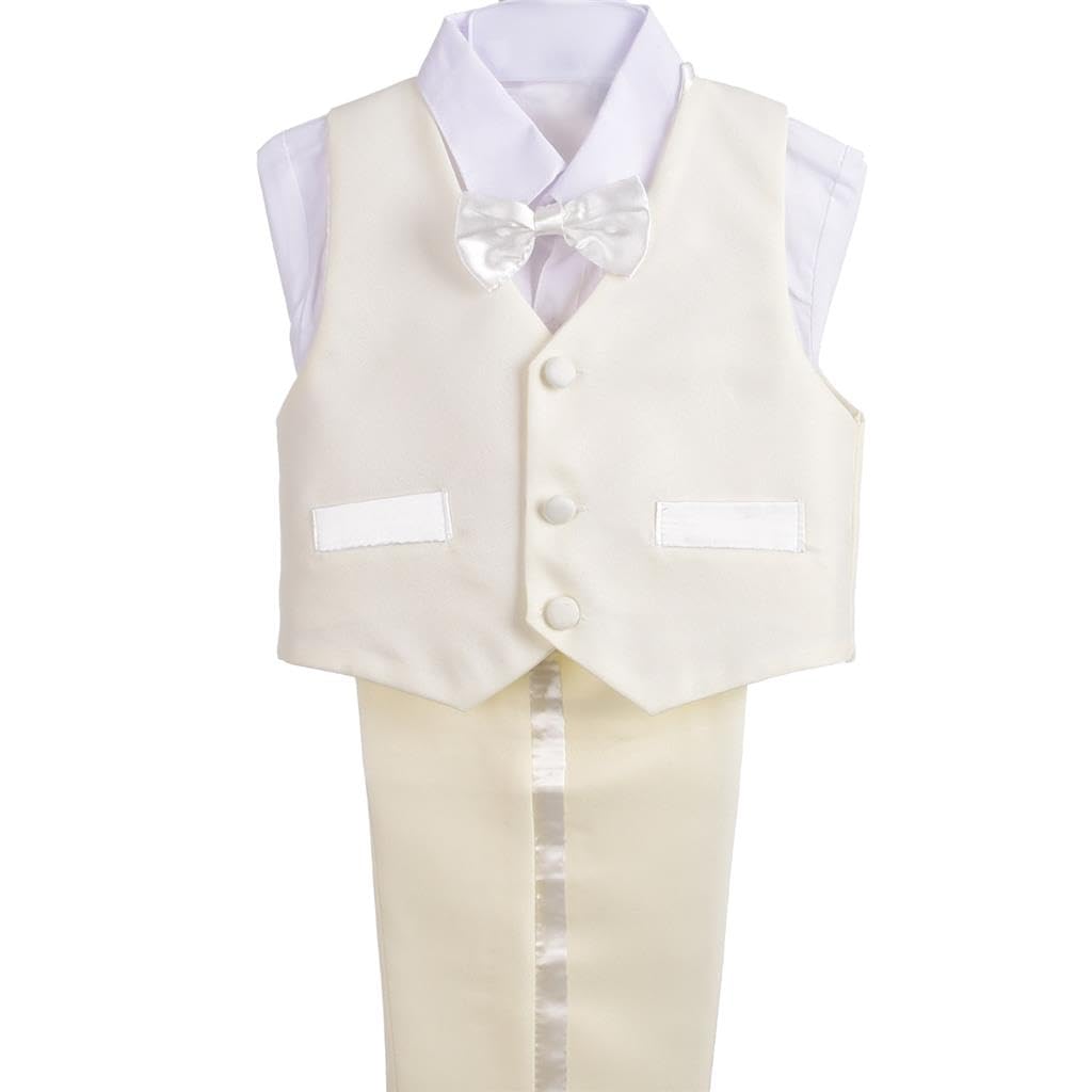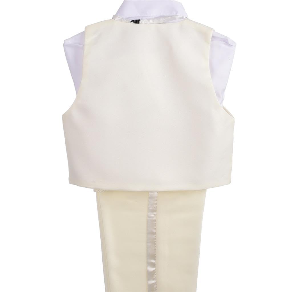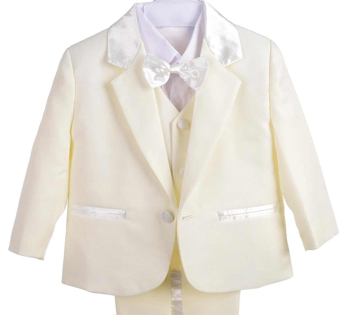 [5 Pieces Little Boys Tuxedo Suit Set] This smart 5-piece gentleman suit set formal outfit includes blazer jacket, white dress shirt, adjustable bow tie, vest and pants. Made of luxurious polyester and cotton fabric. Breathable and comfortable.[Colors] Black, White, Ivory, Light Gray, Silver Gray, Royal Blue, Khaki Beige, Dark Navy Blue, Charcoal Gray, Burgundy Red, Iron Gray. (NOTE: Product color may slightly vary due to the lighting of photo shooting.)