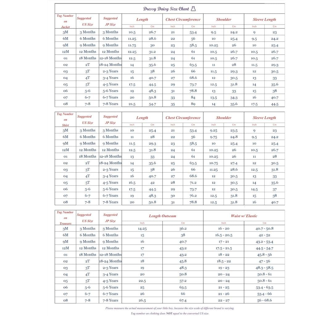 [Size for Infant, Baby, Toddler Children] 3 months, 6 months, 9 months, 12 months, 18 months, 2T, 3T, 4Tīŧ 5T, 5-6, 6-7 and 7-8. The age range is for reference, please measure the actual body size and refer to the size chart to choose a proper size for best fit.