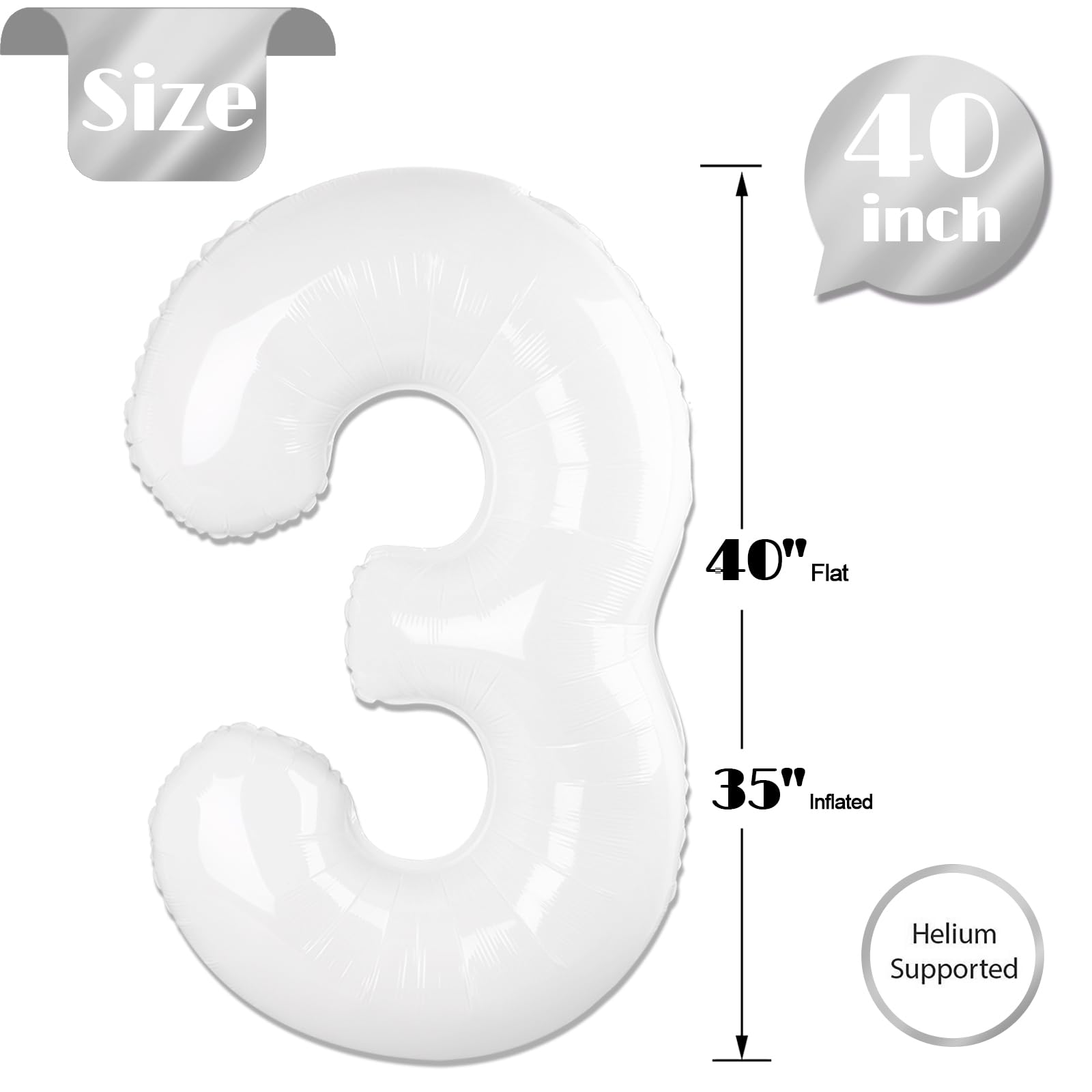【Helium or Natural Air Both Work Well for this Balloon】This 3 balloon is the ultimate party accessory for 3 13 23 30 years old birthday decorations for girl and boy! You can inflate the 3 balloon number with helium for a floating effect or blow it up with natural air to hang it up as a decoration. Either way, this sturdy white number balloon won't disappoint. It's perfect for long-lasting celebrations that will leave a lasting impression on your guests.