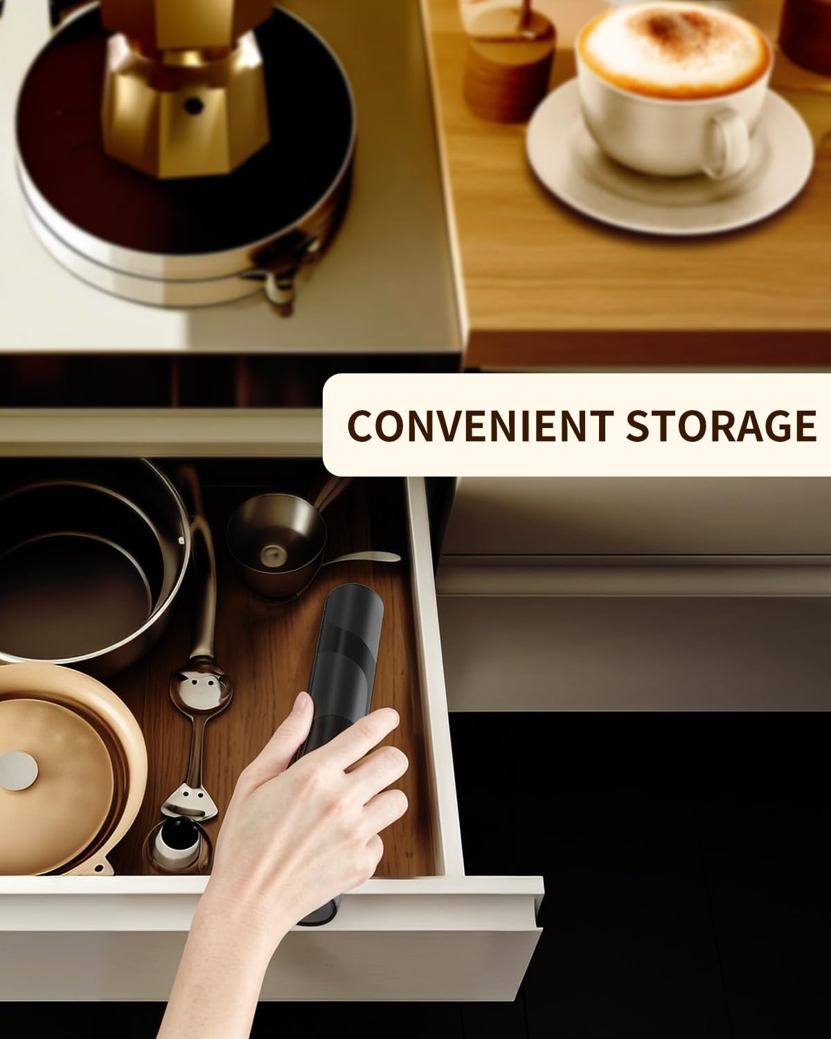 EASY TO STORE AND CARRY: This electric hand frother features a storage tube to protect against dust and keep the whisks clean. Its lightweight and portable design allows you to easily carry it in your bag for use in hotels, offices or outdoor settings