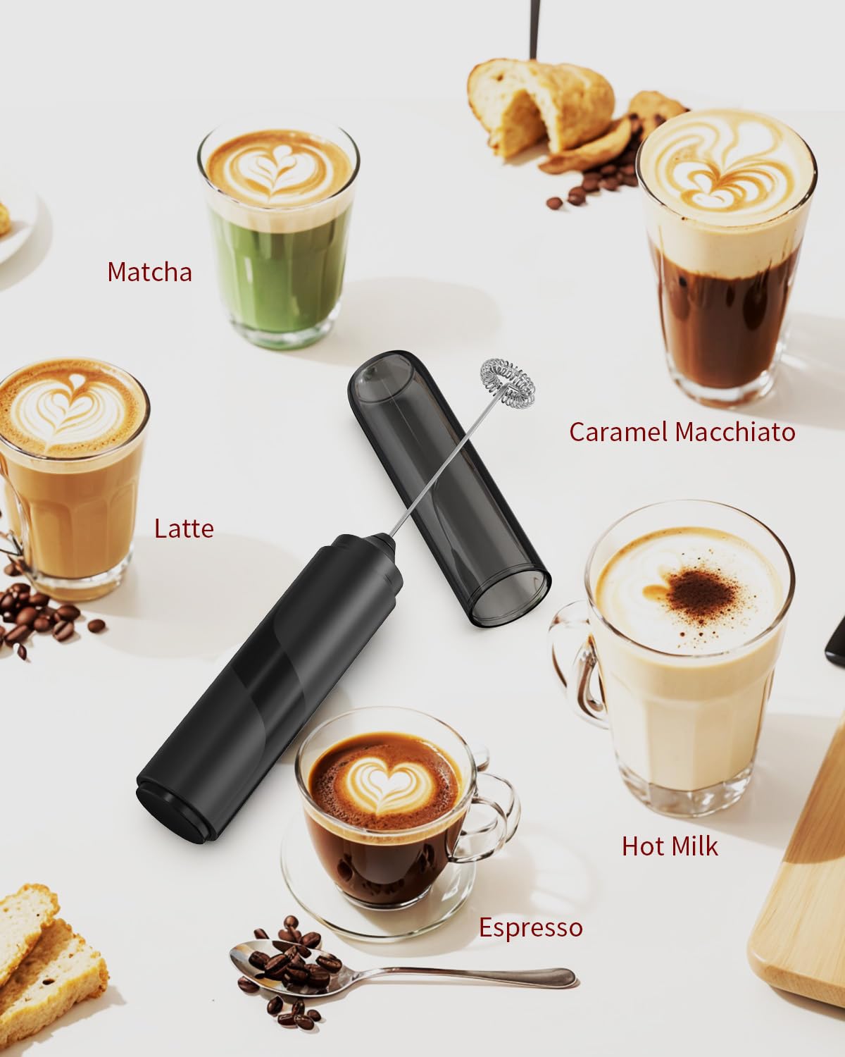 CREAMY RICH FROTH IN SECONDS: Featuring a powerful motor, our super-quick handheld frother will whisk and create foam within 20 seconds. It is a perfect foam maker for coffee, latte, cappuccino, matcha, hot chocolate and any other frothed milk