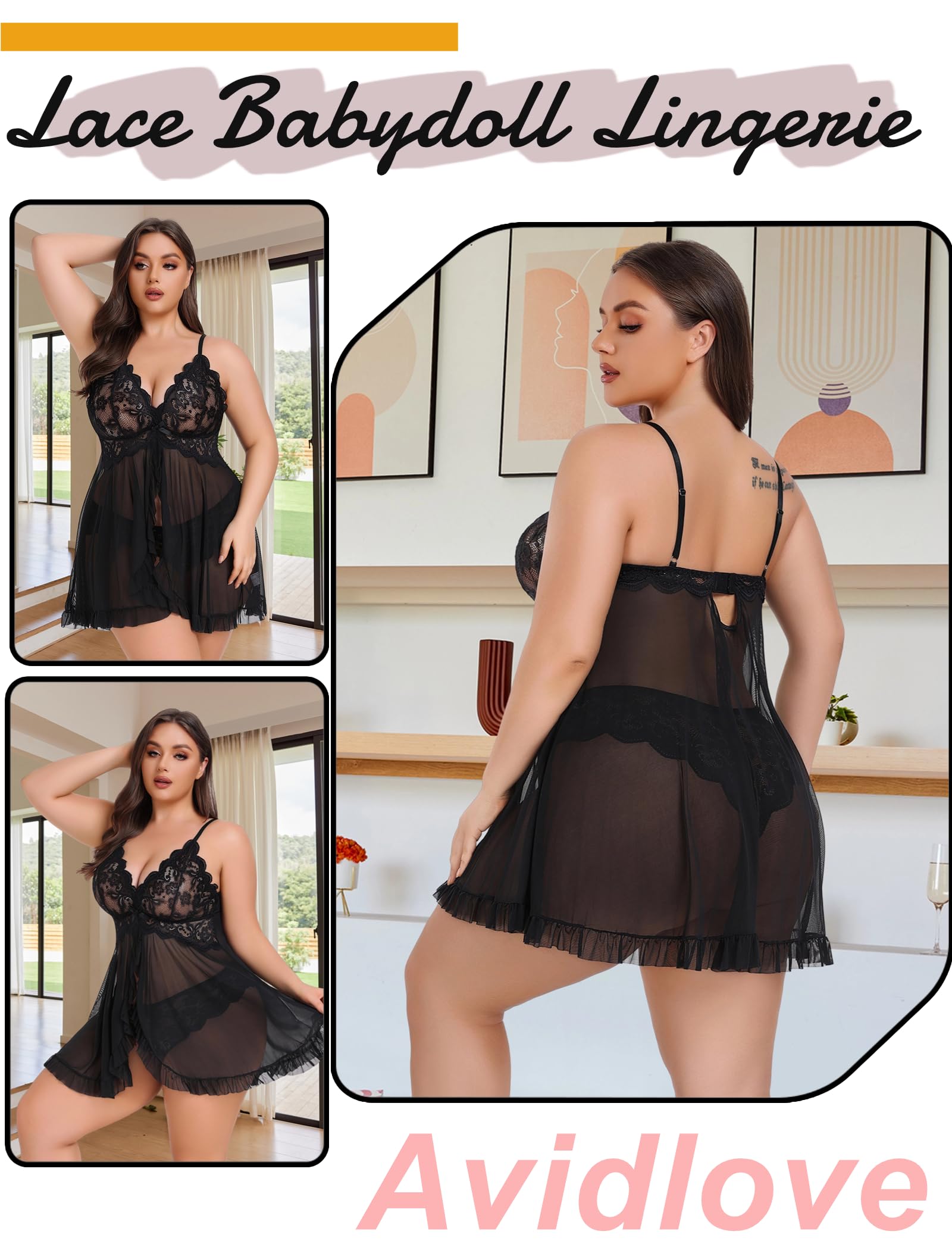 【Unique Design】This plus size sexy lingerie is featuring deep V-neck, adjustable spaghetti straps. The details of the lingerie fully meet your imagination.