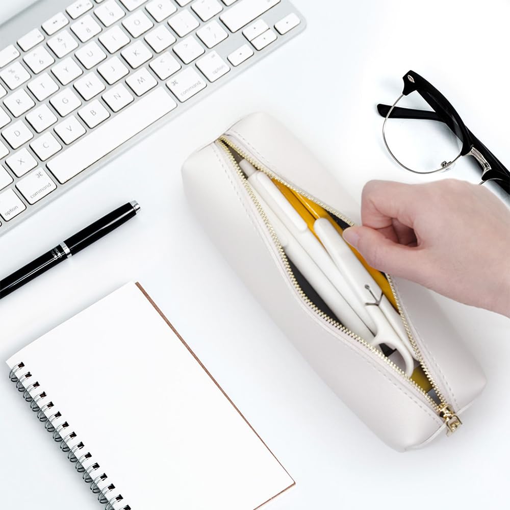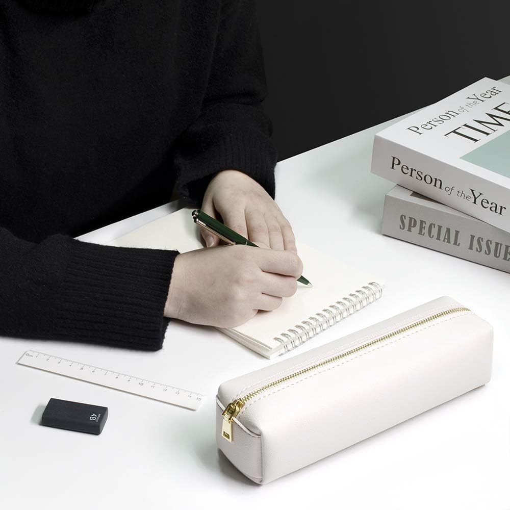 【Simple Design】Simple rectangular shape with elegant color, making your desk nice and neat. With high quality PU material, this pencil case can easily keep its shape.