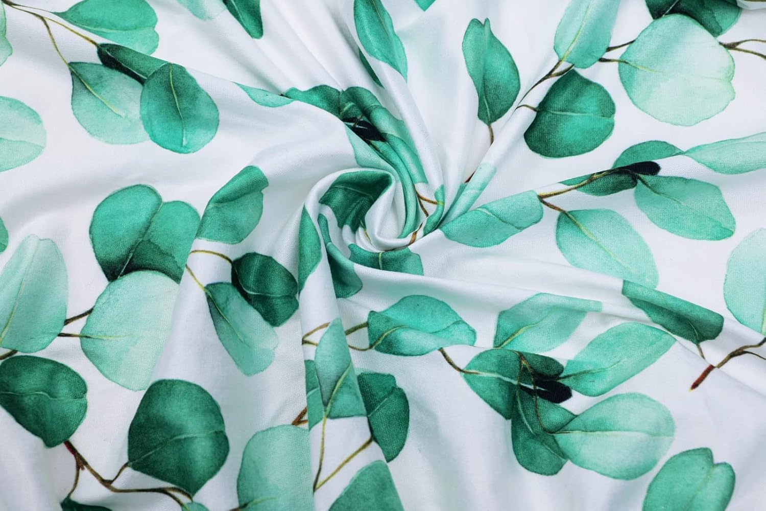 Watercolor seamless pattern of green herbs, eucalyptus leaves and blossom branches on white background, our 3-pack bassinet fitted sheets are lovely enough to match any themed baby's bassinet.