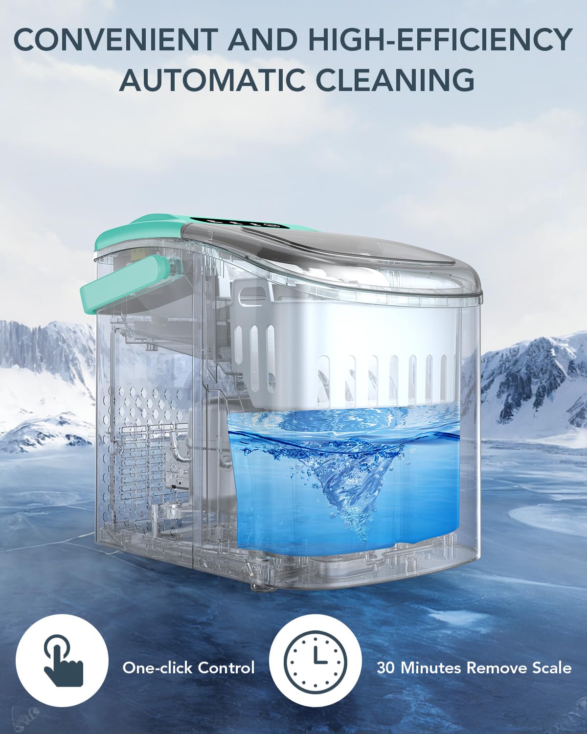 Ice Makers Countertop Self-Cleaning,Quiet Portable Mini Ice Machine with Basket/Scoop, Energy Saving for Home/Office/Kitchen/RV