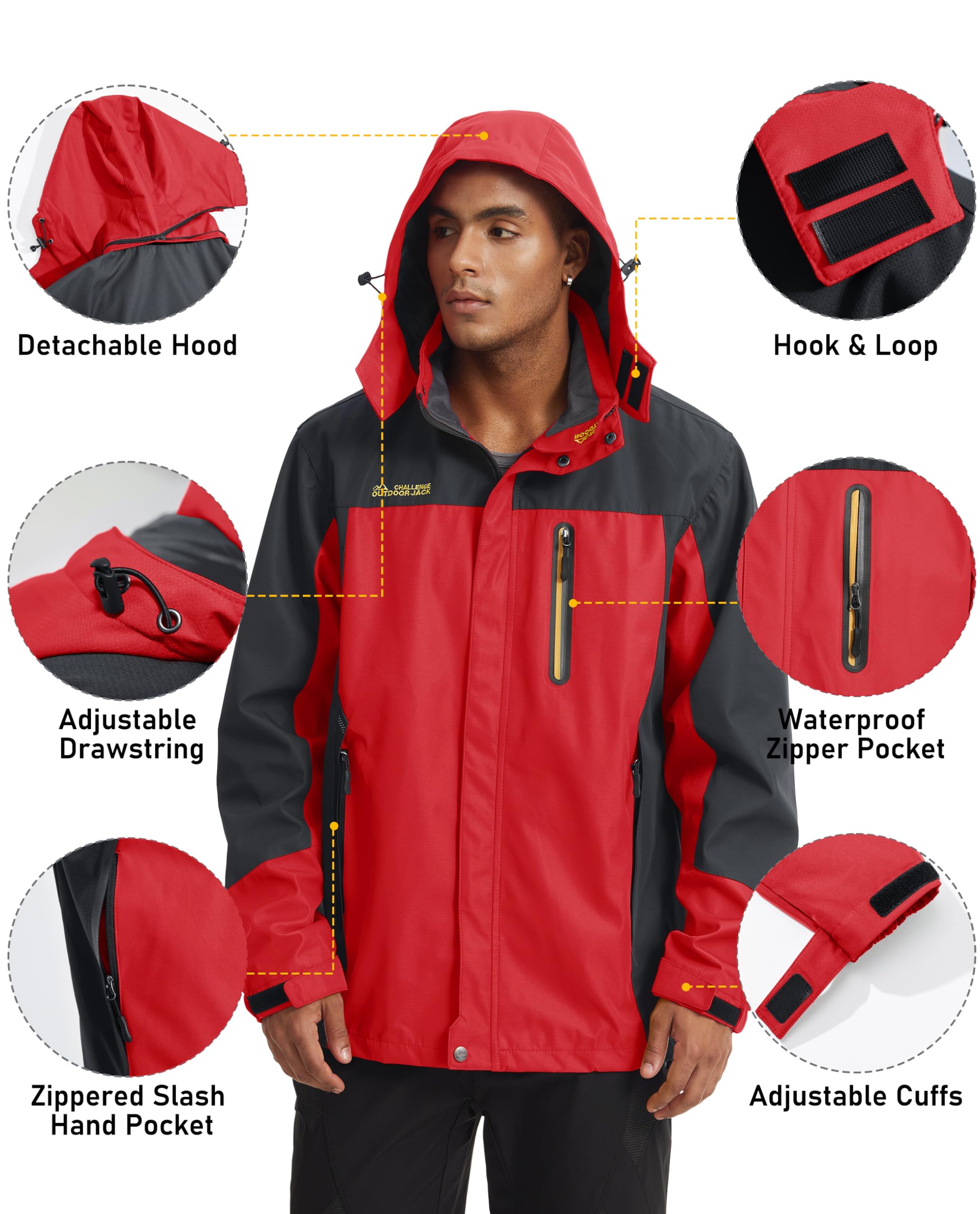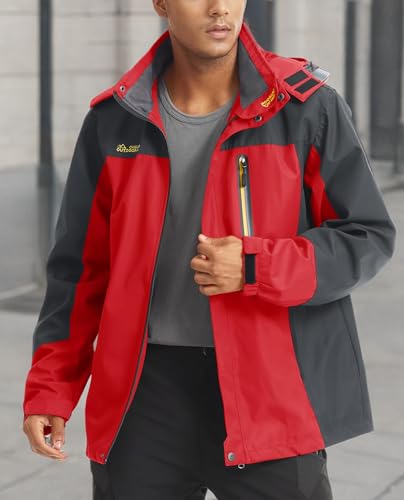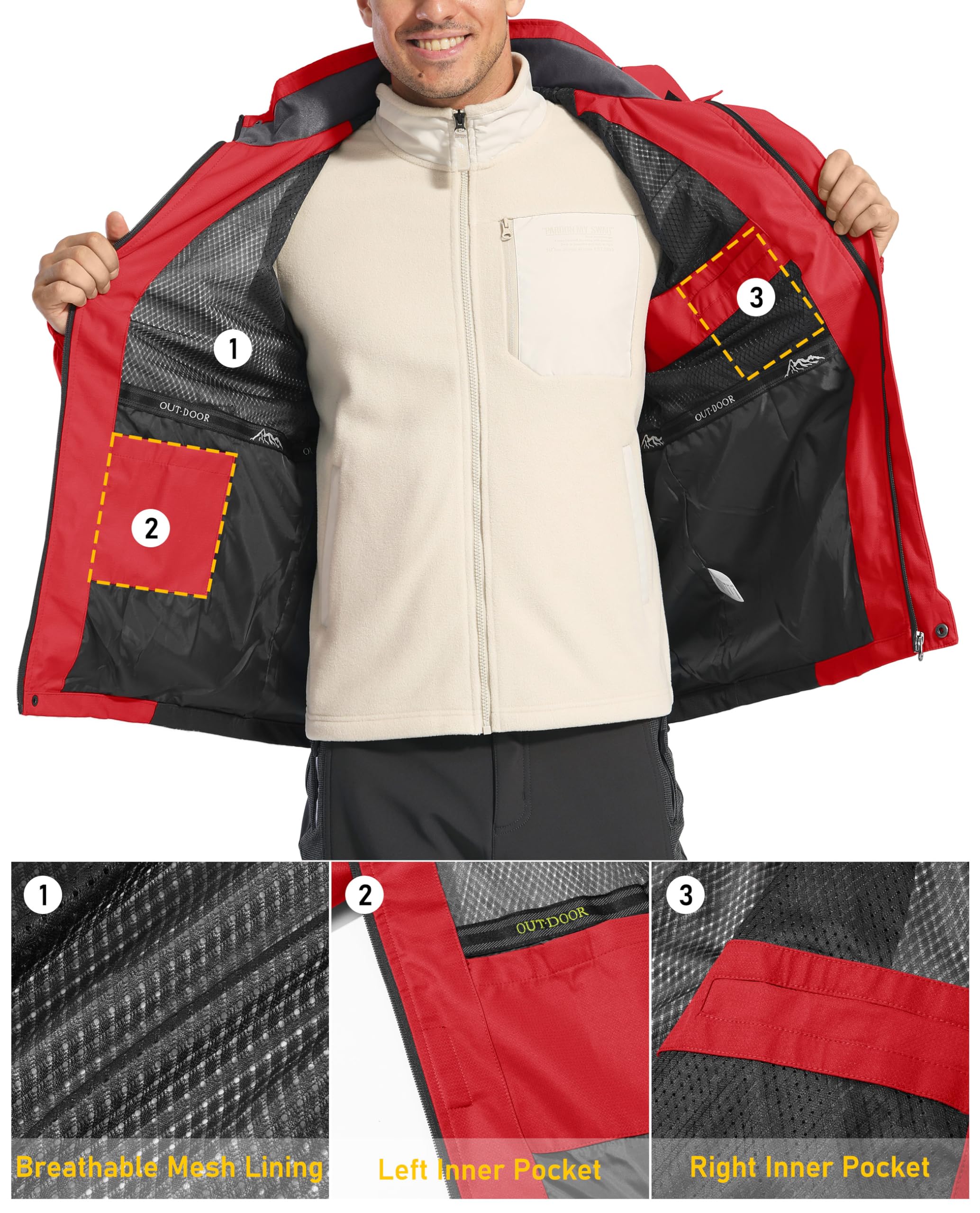 [5 Pockets] This men jacket has 2 large zipper hand pockets, 1 waterproof zipper pocket on left chest, 2 inner pockets, providing enough room to essentials.