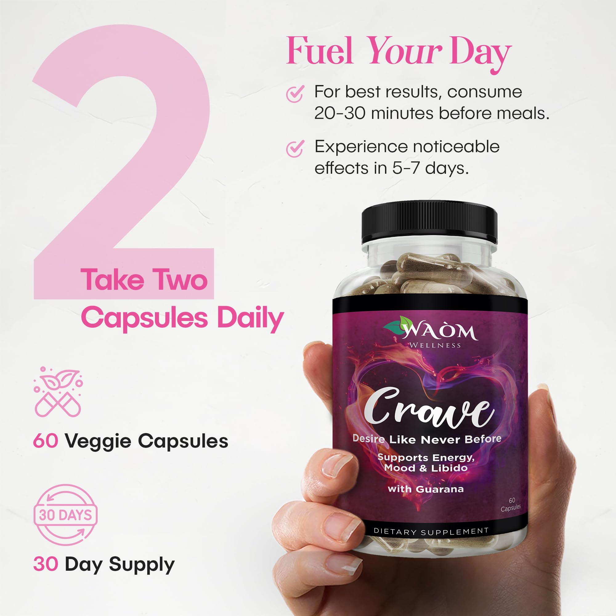 Consistent Use for Best Results Designed as a natural wellness supplement, Crave is not a fast-acting product. Daily use over time supports energy, mood, and libido for lasting, balanced benefits.*