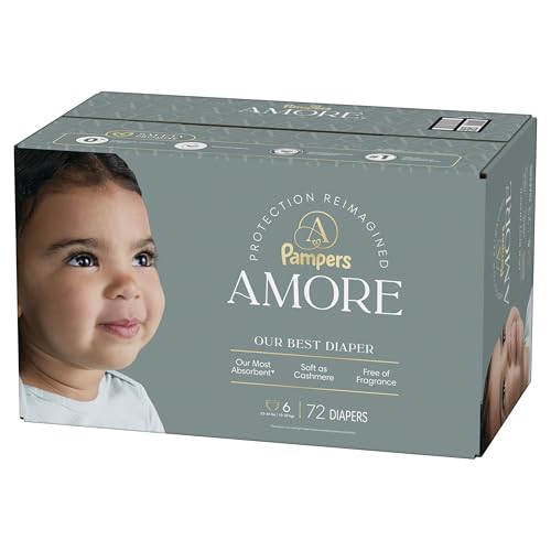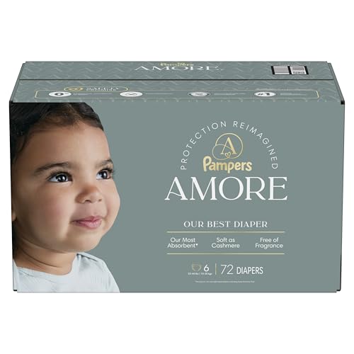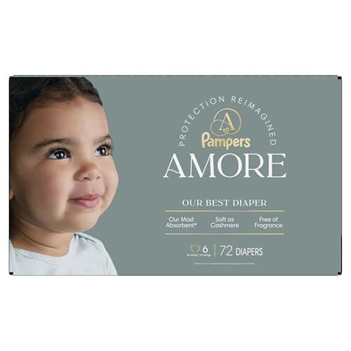 Introducing Pampers Amore—our best diaper. Thoughtfully crafted with 60+ years of Pampers quality and expertise, reimagined for today. Built with 5 layers of protection, it is our most absorbent diaper*. Pampers Amore diapers feature an all-around blowout and leak-guard barrier to help prevent up to 100% of leaks. Plus, they are built with our KeepDry liner for unbeatable dryness and comfort**. These diapers provide premium performance without compromise. They are Dermatologically accredited by the Skin Health Alliance and tested for 1000+ Harmful Chemicals. They are hypoallergenic and free of fragrance, parabens, elemental chlorine and latex (no natural rubber). Because real luxury means peace of mind. Pampers Amore diapers are designed with the finest materials. They are soft as cashmere, making them extra gentle on your baby’s delicate skin. Each diaper features delicate patterns as cute as your little one with a wide wetness indicator that lets you know when they go. Because when it comes to love, there's no such thing as good enough. Give them the best. Pampers Amore—made with love in every detail.among U.S. non-overnight taped diapers; excluding Super Economy Pack **Based on size 4 Pampers Amore. 3 typical wettings of 75ml under 0.5psi pressure. Among day-and-night taped diapers