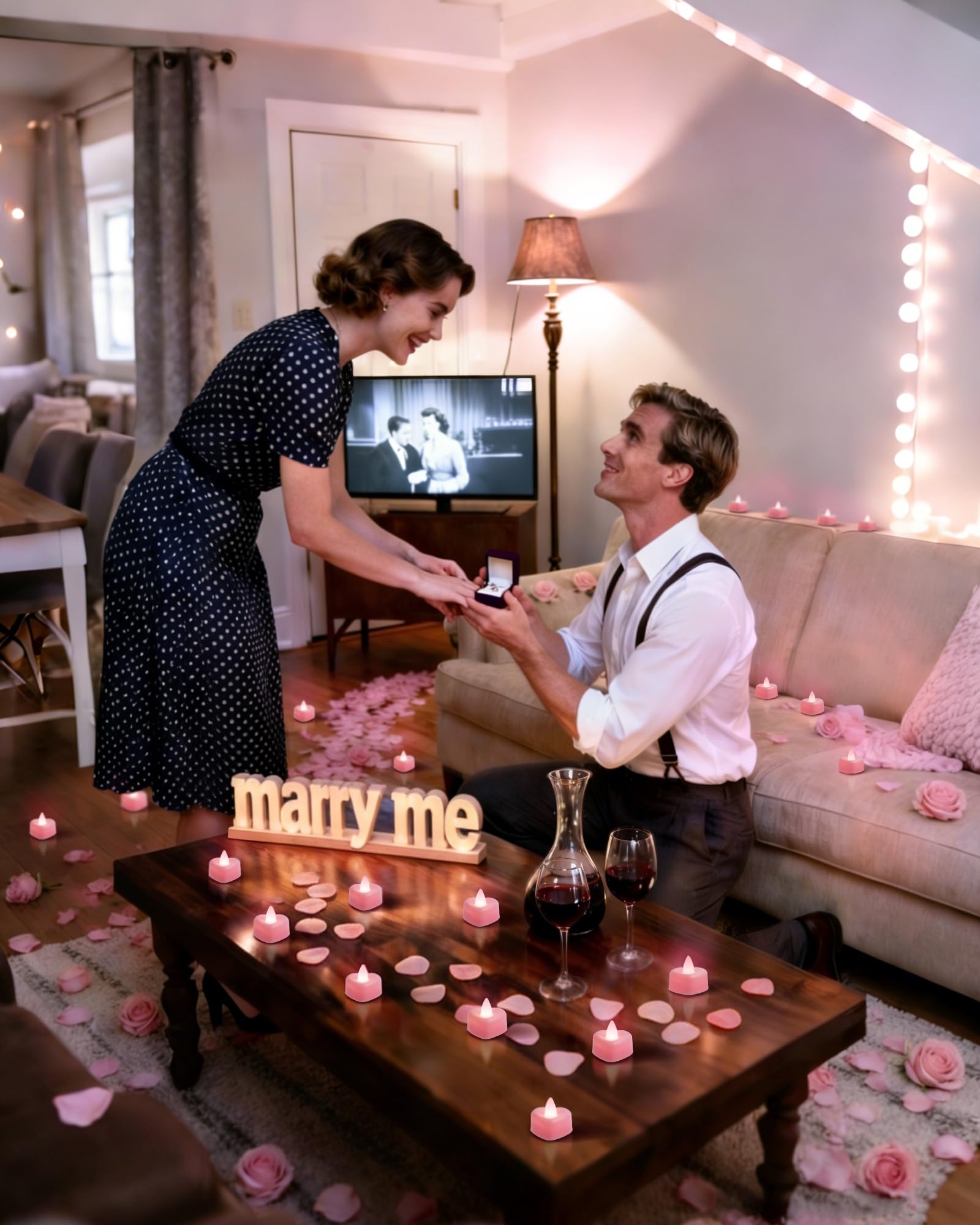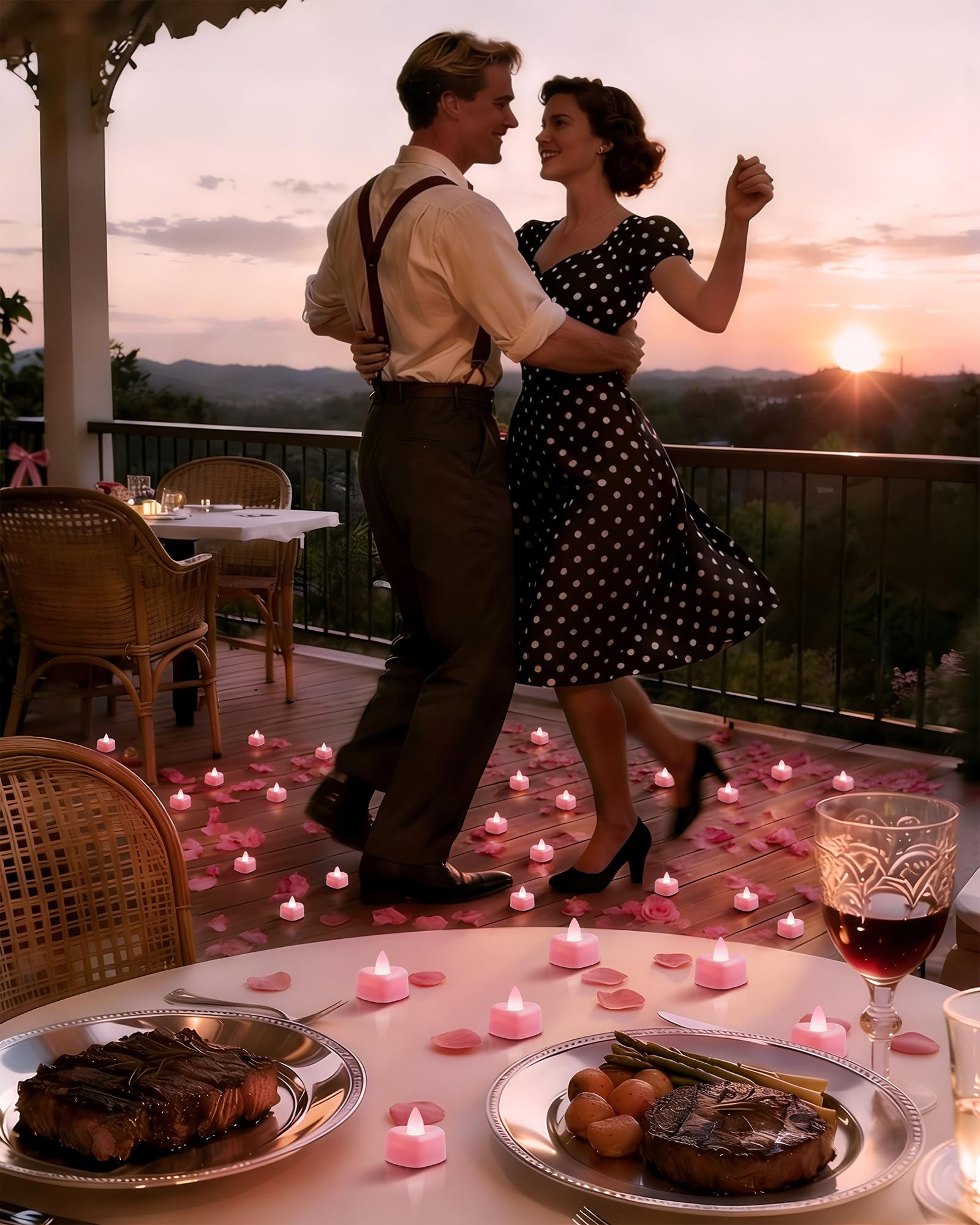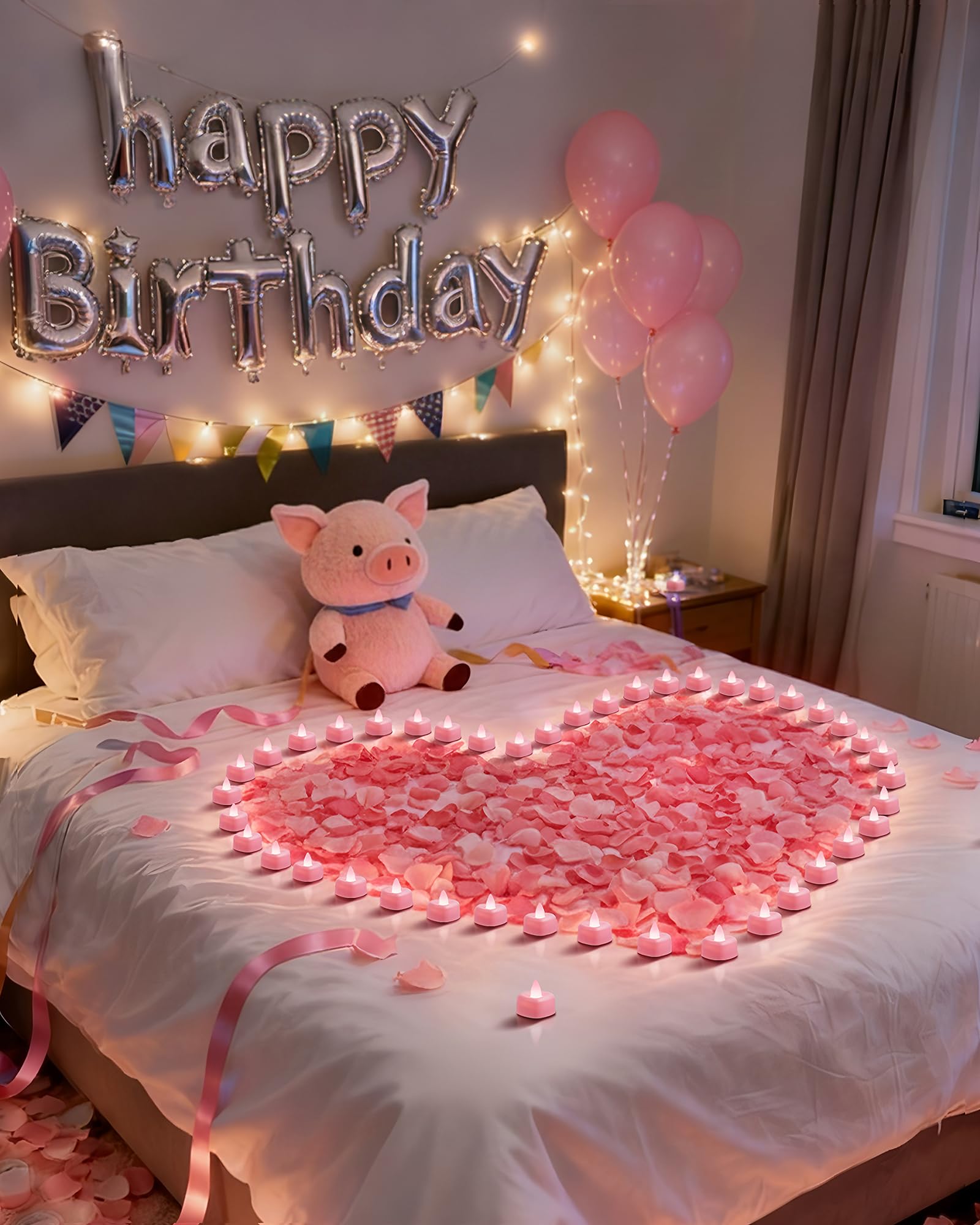 Pink Heart-Shaped LED Tea Candles: These enchanting electronic tea lights emit a warm, bright white glow, effortlessly transforming any space into a romantic haven without the worry of flames or mess